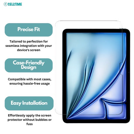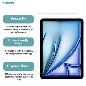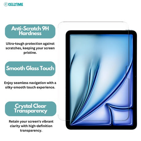 Introducing the CellTime Tempered Glass Screen Guard for iPad Air 13" (M2) 2024 - your ultimate protection solution for the your tablet. Crafted with precision and designed to perfection, this screen guard is a must-have accessory to safeguard your investment.