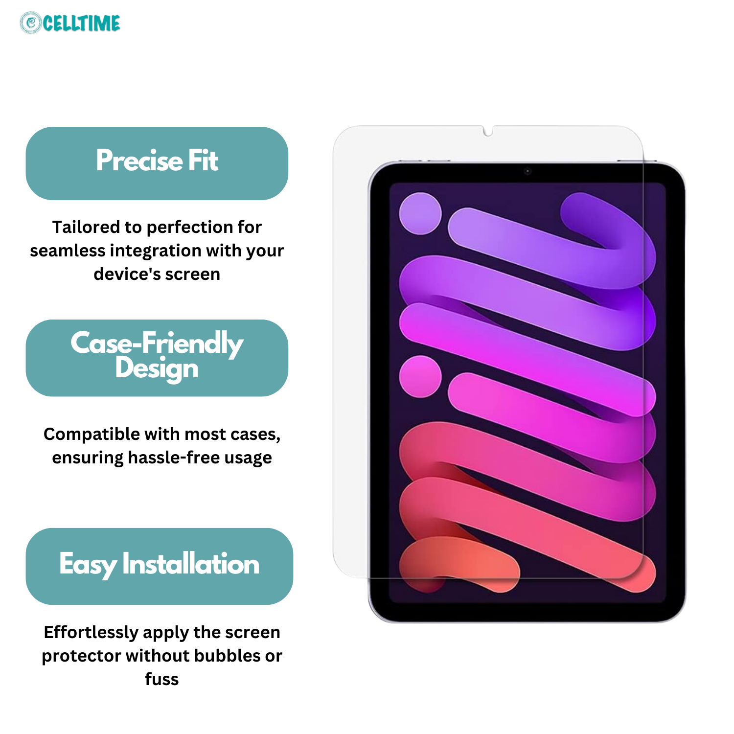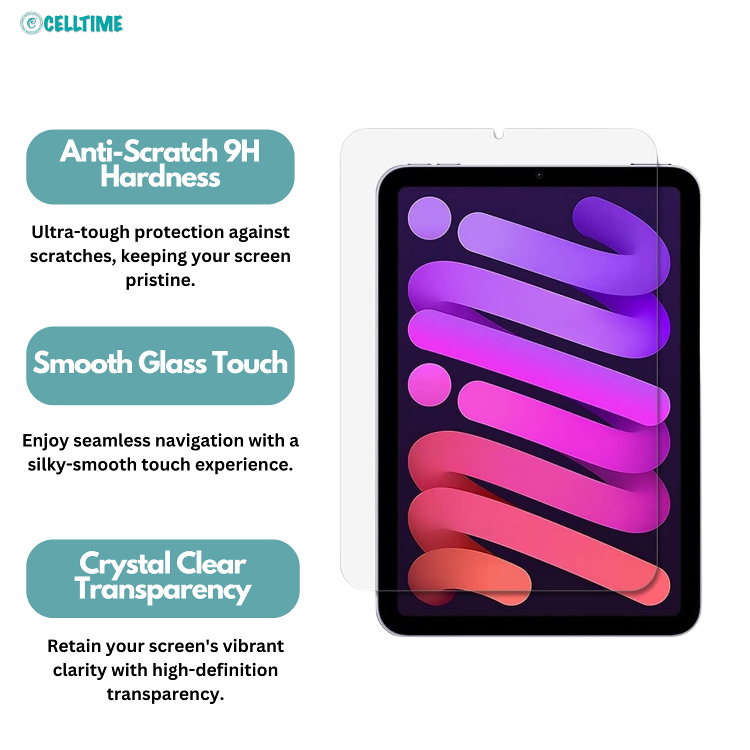 Introducing the CellTime Tempered Glass Screen Guard for iPad Mini 7 (8.3") (A17 Pro) - your ultimate protection solution for the your tablet. Crafted with precision and designed to perfection, this screen guard is a must-have accessory to safeguard your investment.