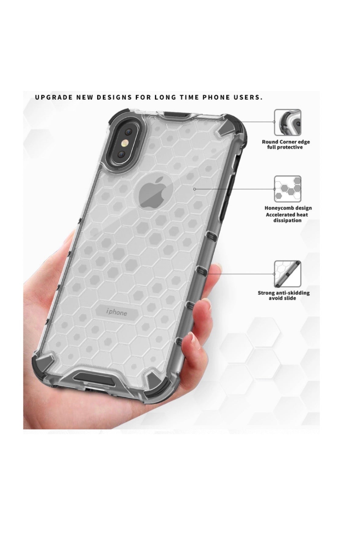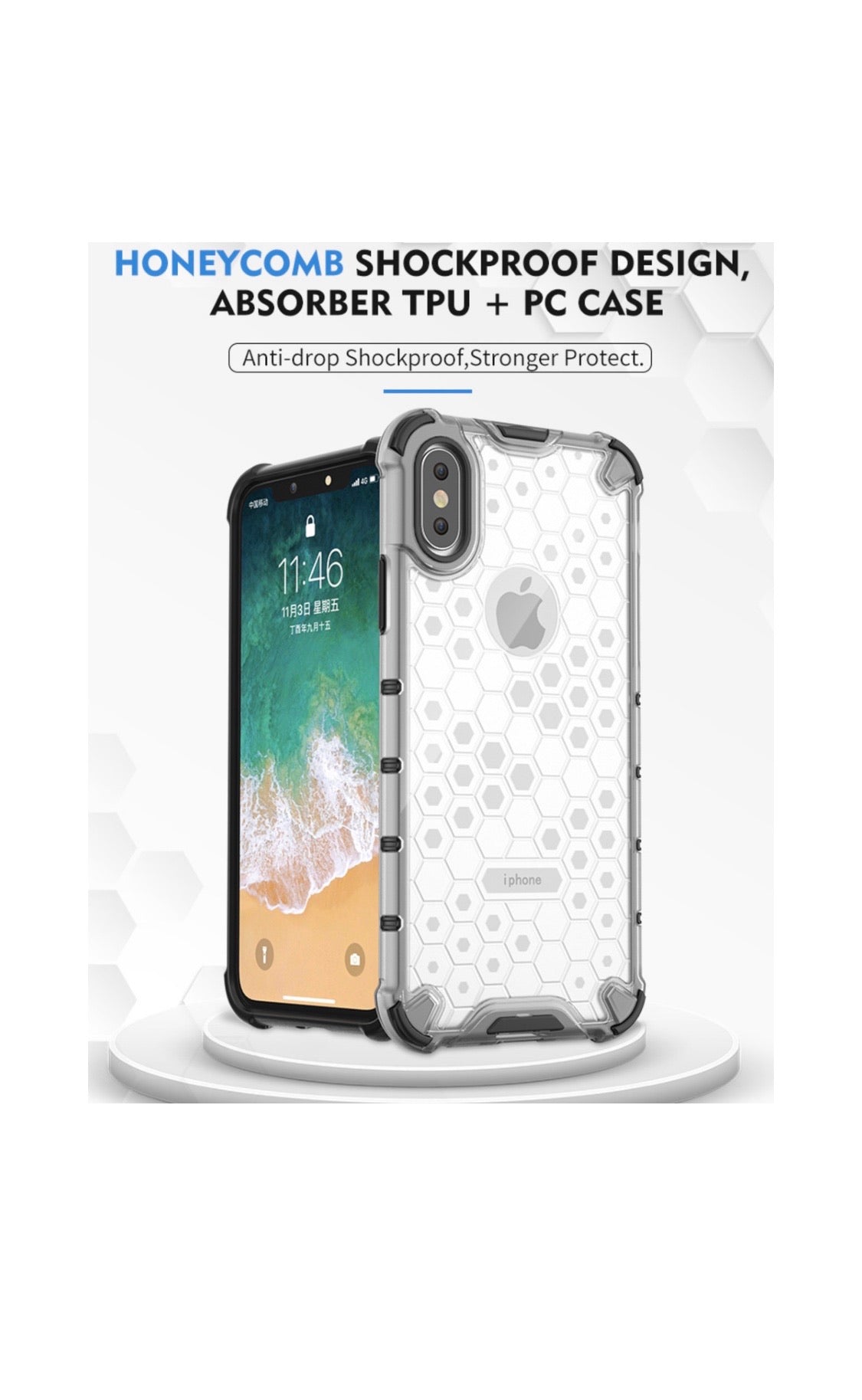 -Honeycomb Shockproof Design, absorber TPU + PC Case