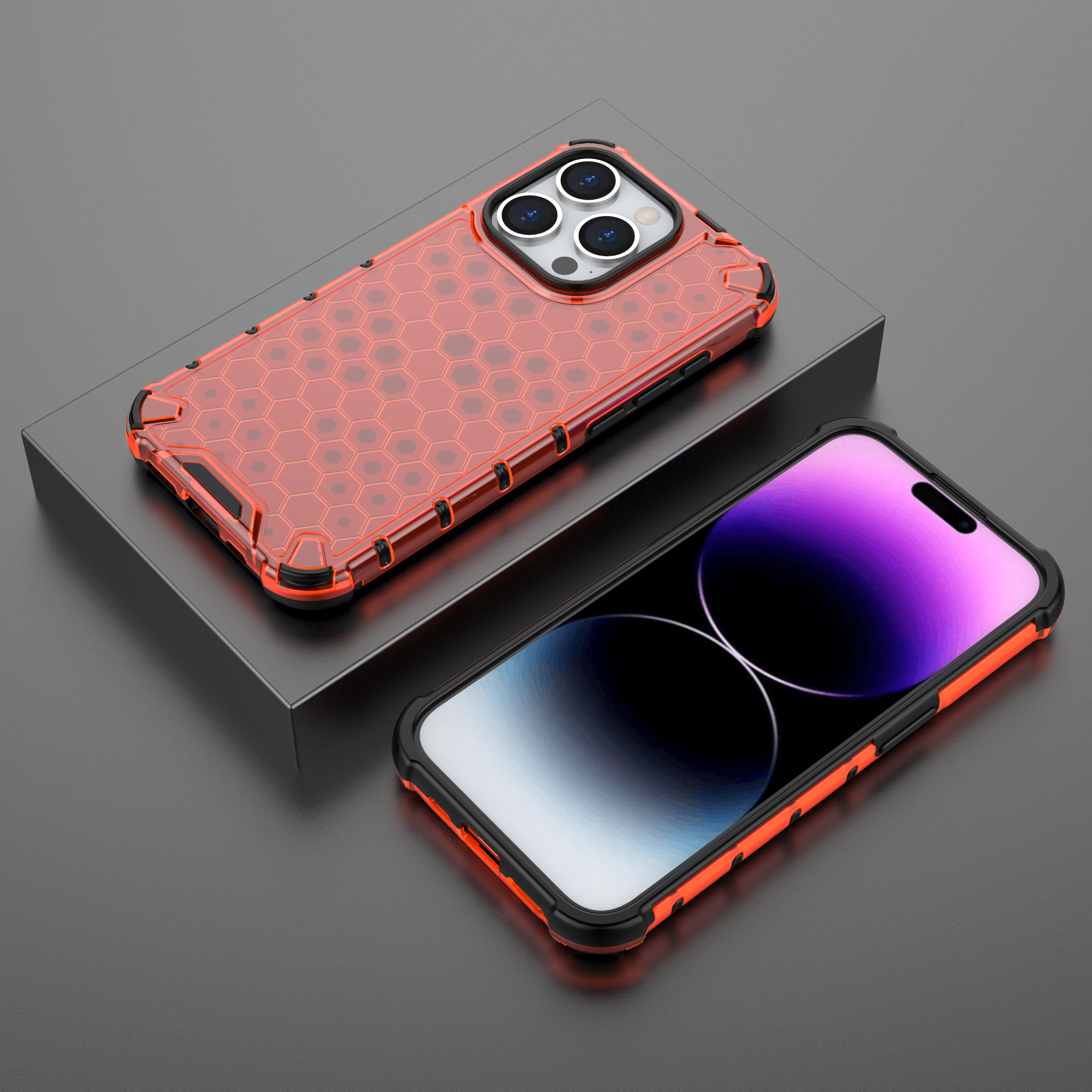 Honeycomb Shockproof design, absorber TPU + PC case