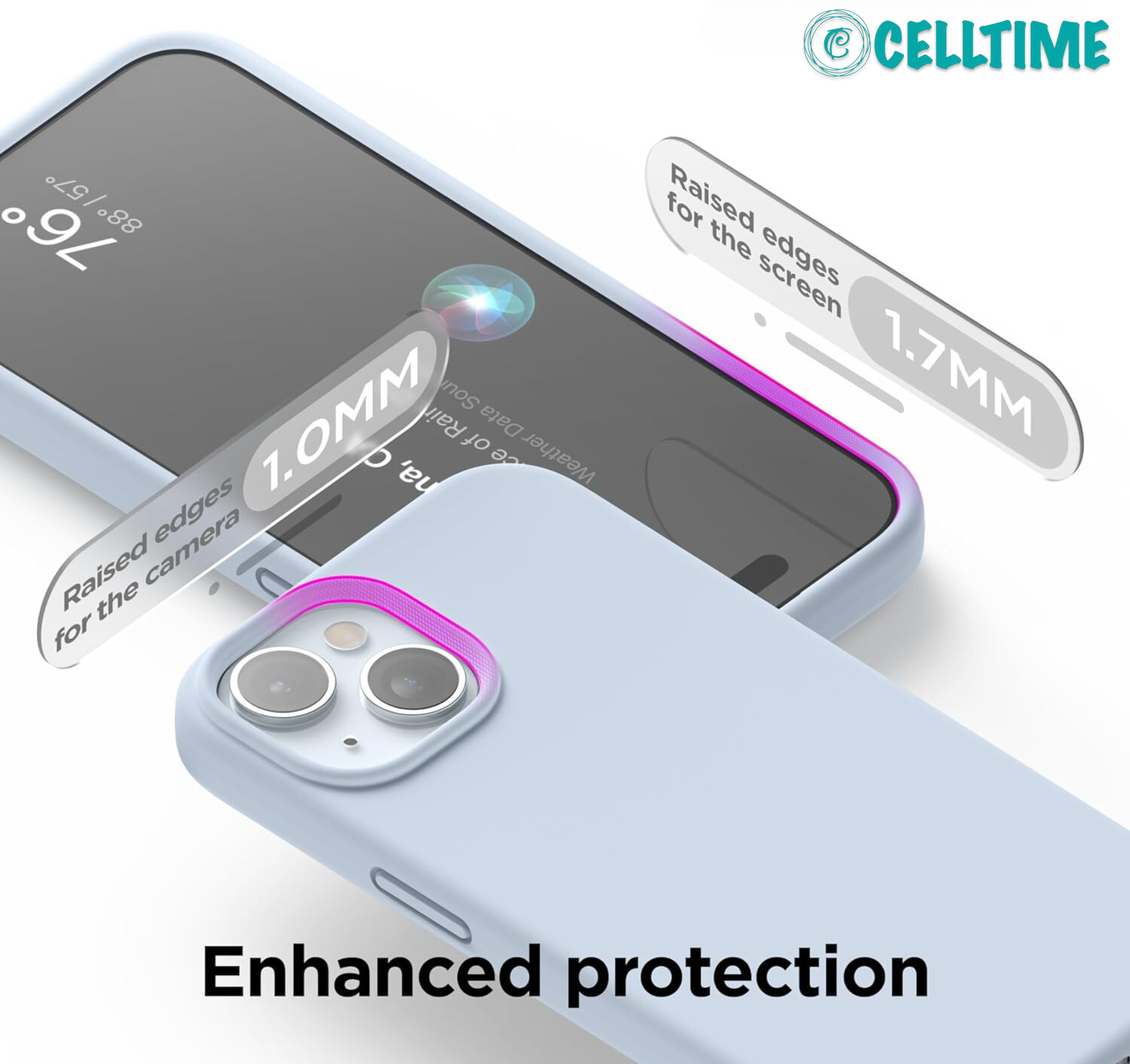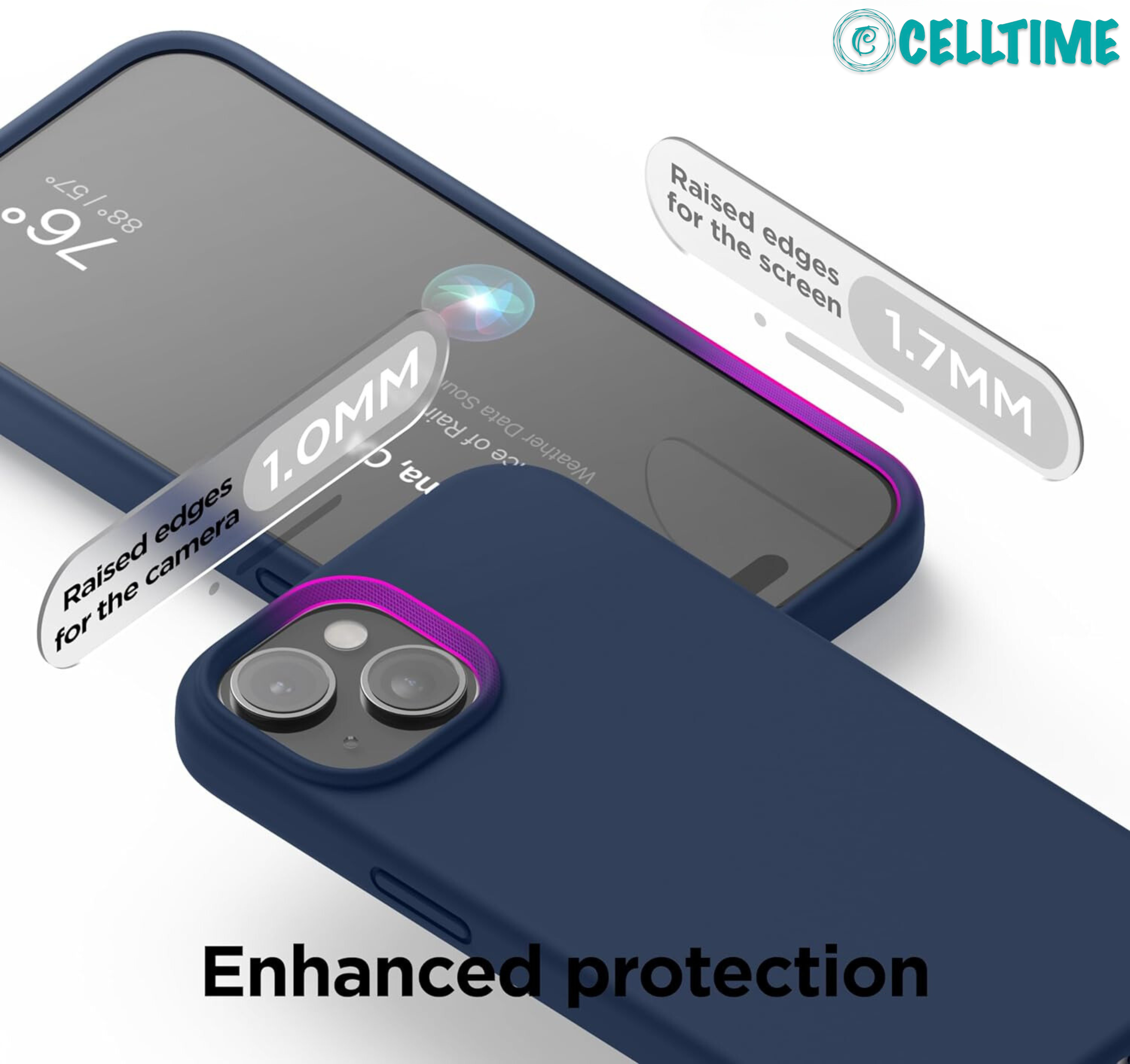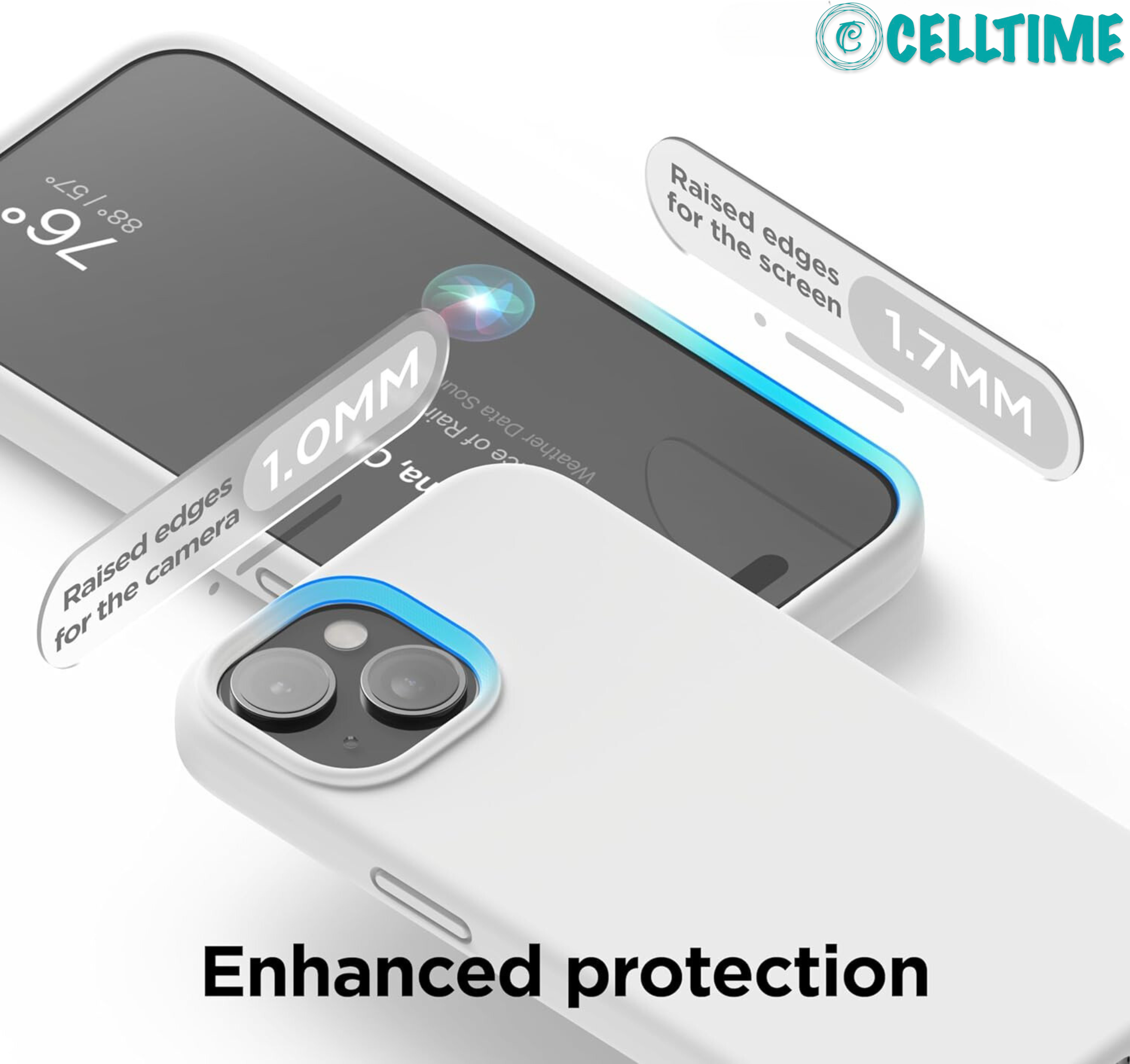 Screen and Camera Protection - The CellTime iPhone 15 Series case's edge lip to protect your screen and camera from directly contacting surfaces. So you don't have to worry about your phone's camera scratching when put on the table.