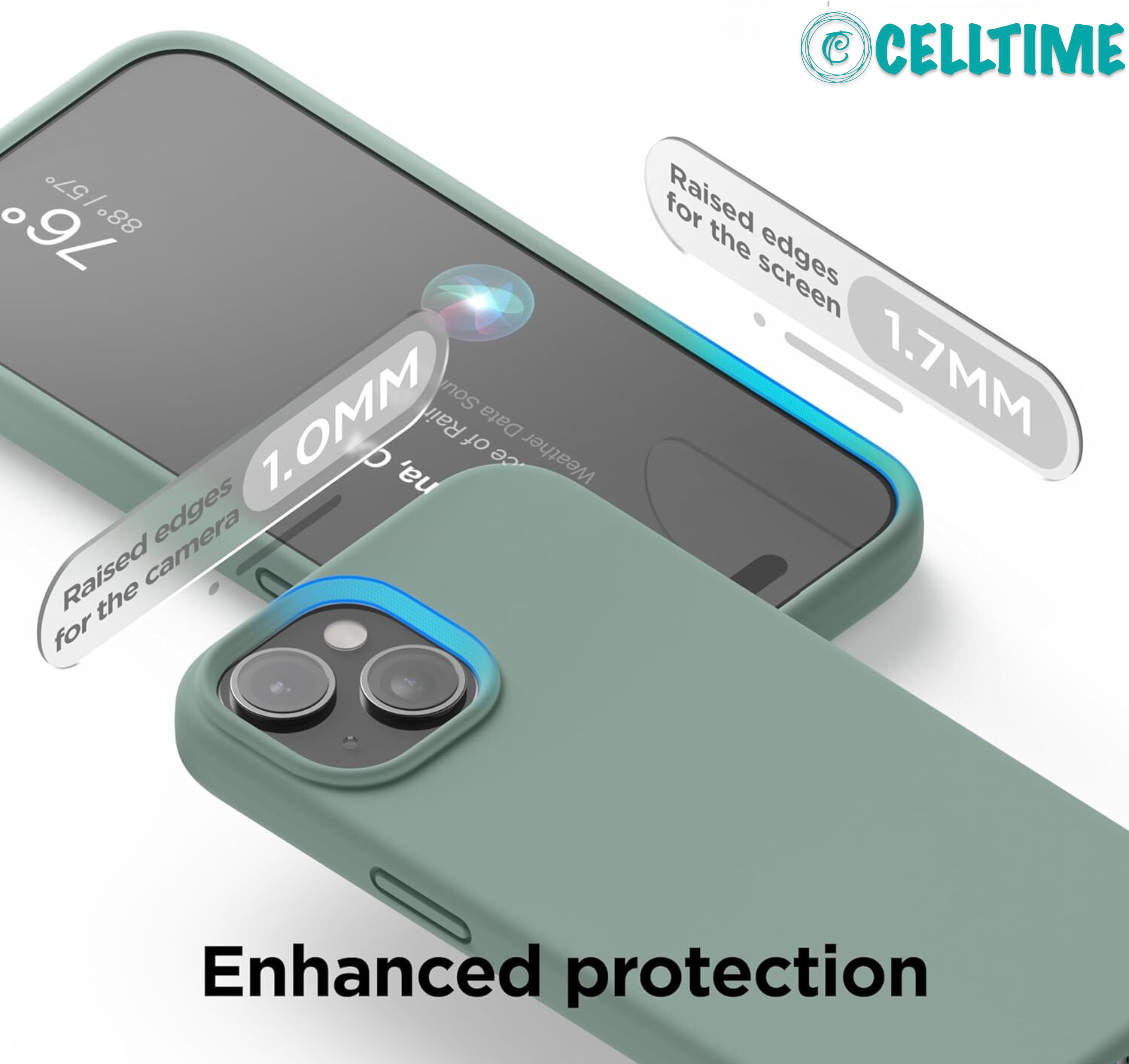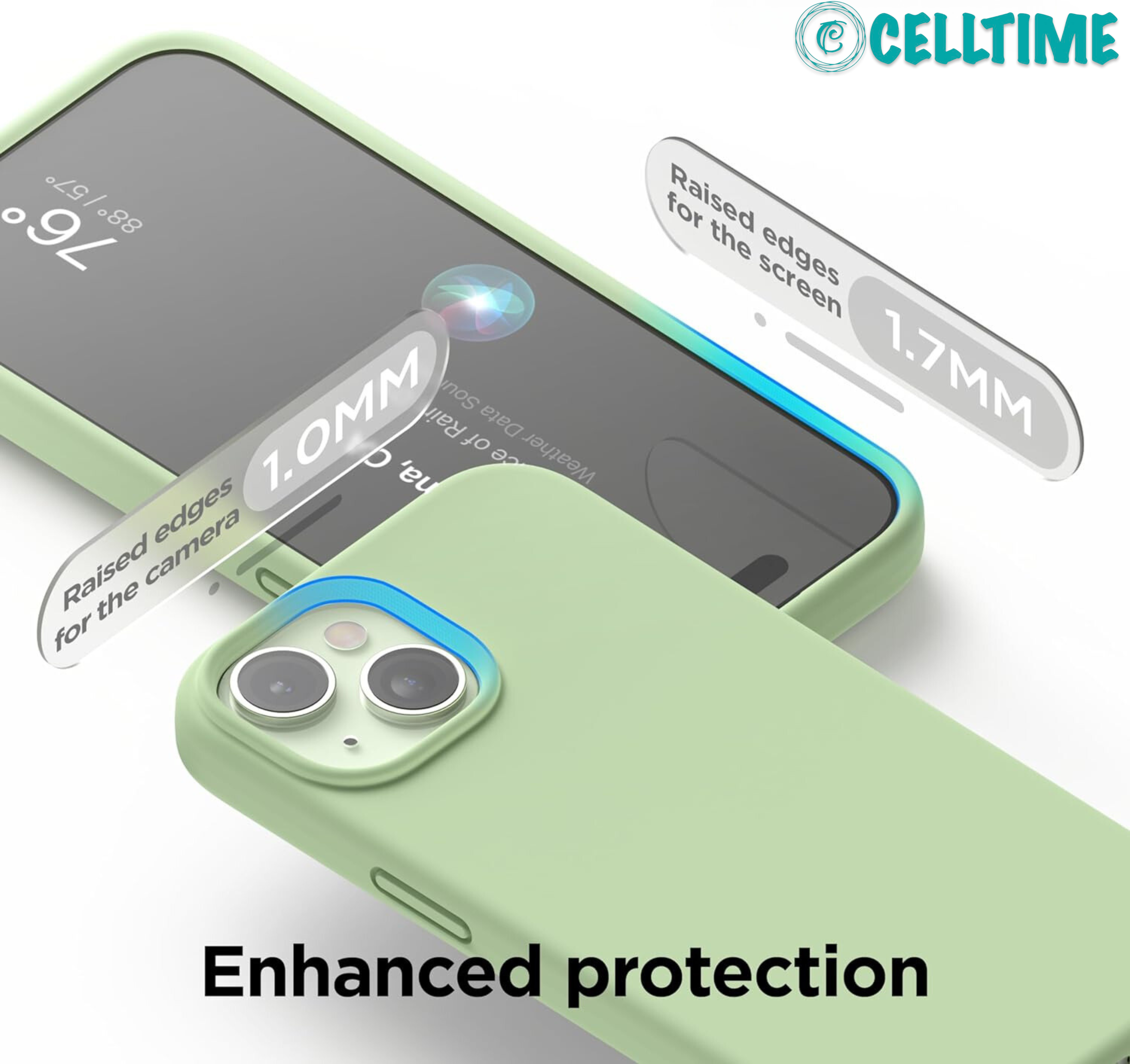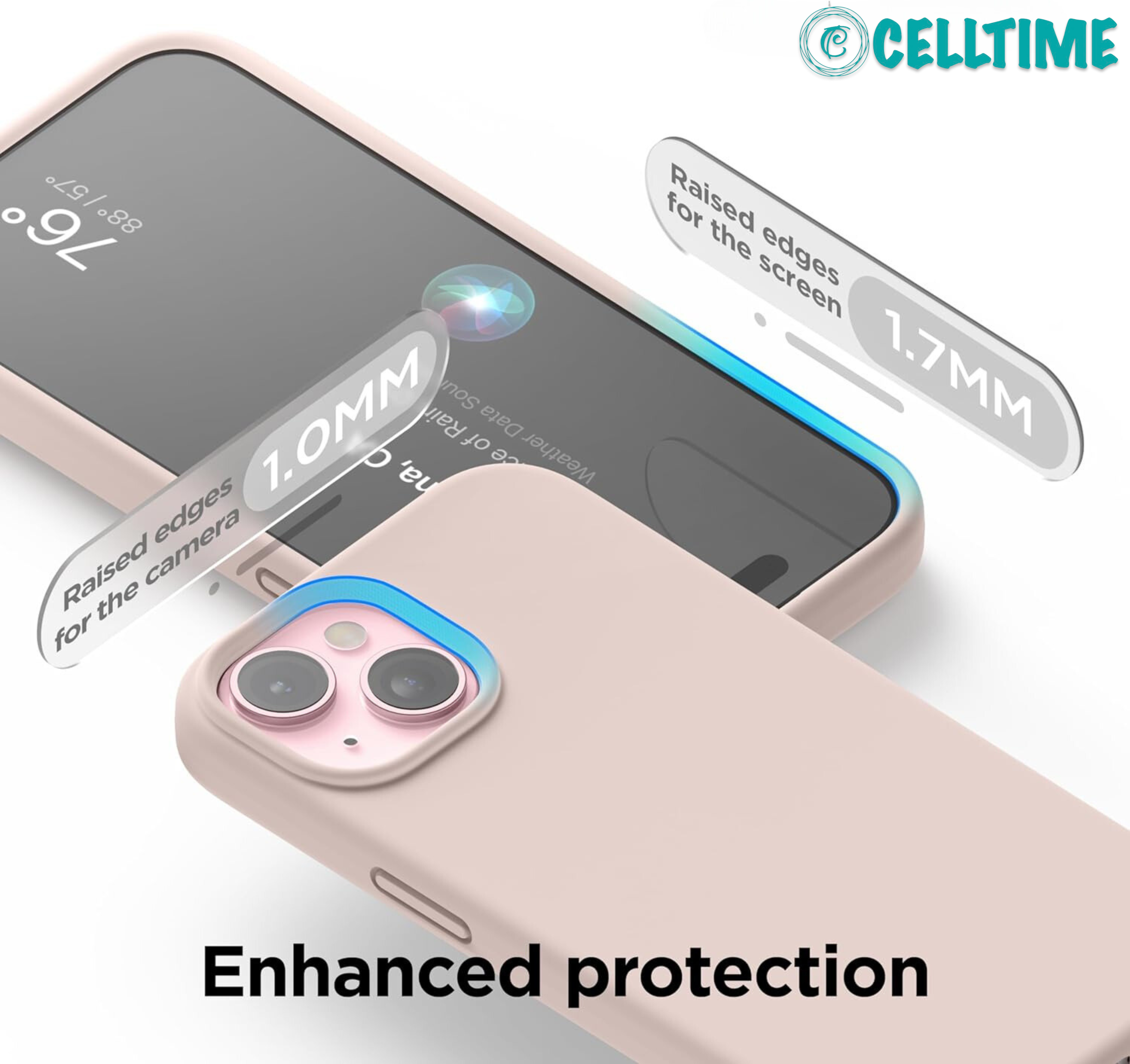 Screen and Camera Protection - The CellTime iPhone 15 Series case's edge lip to protect your screen and camera from directly contacting surfaces. So you don't have to worry about your phone's camera scratching when put on the table.
