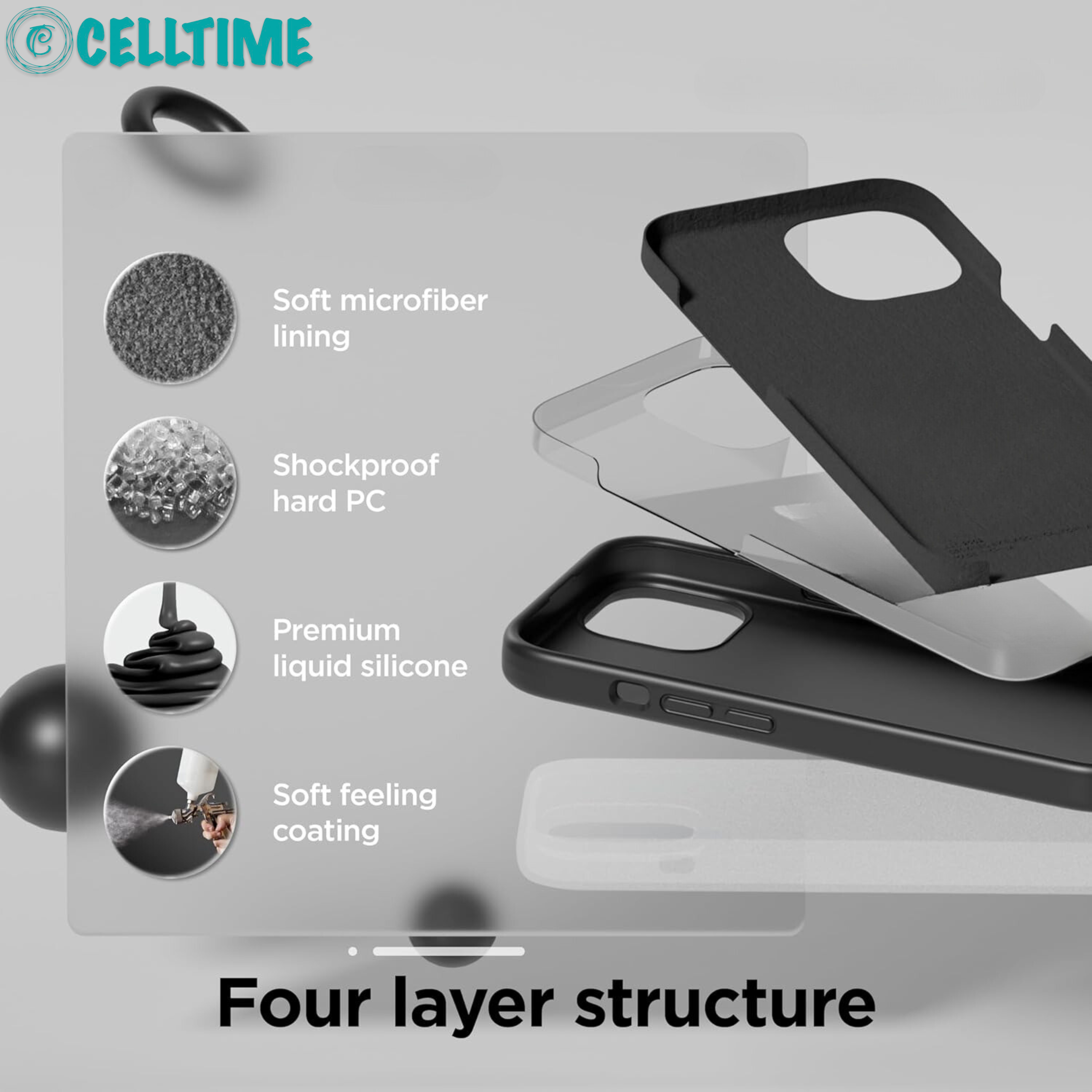 - 1 x CellTime Shockproof Thickened Design Silicone Case for iPhone 15 Series