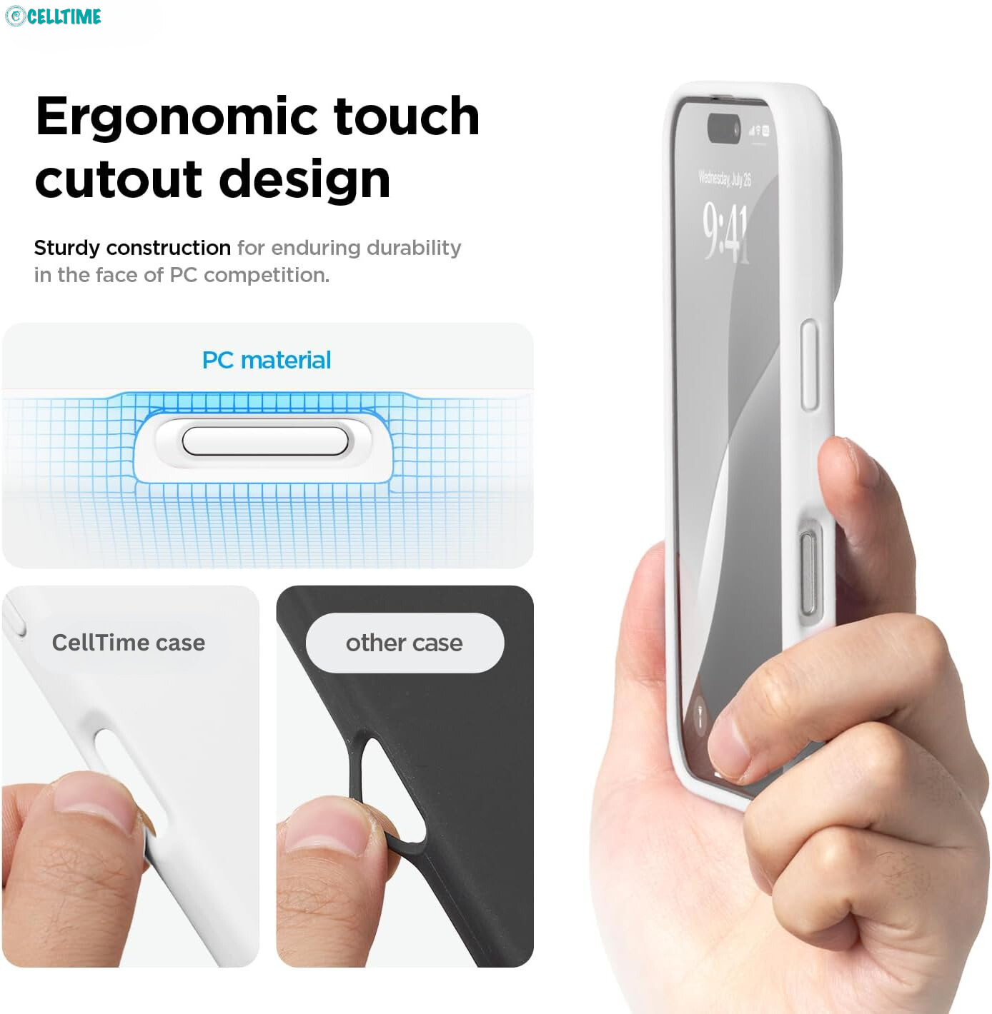 Precision Ergonomic Touch Cutout Design: Engineered for a perfect fit, this case features precisely aligned cutouts that enable smooth access to gestures and enhanced tactile sensitivity for camera controls. This design offers finger-friendly access for seamless interaction with your iPhone's camera button, making every use smooth and intuitive.