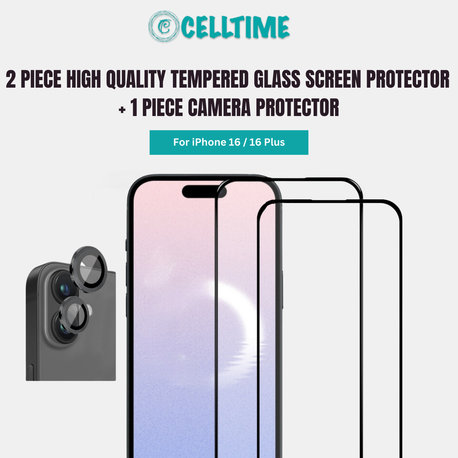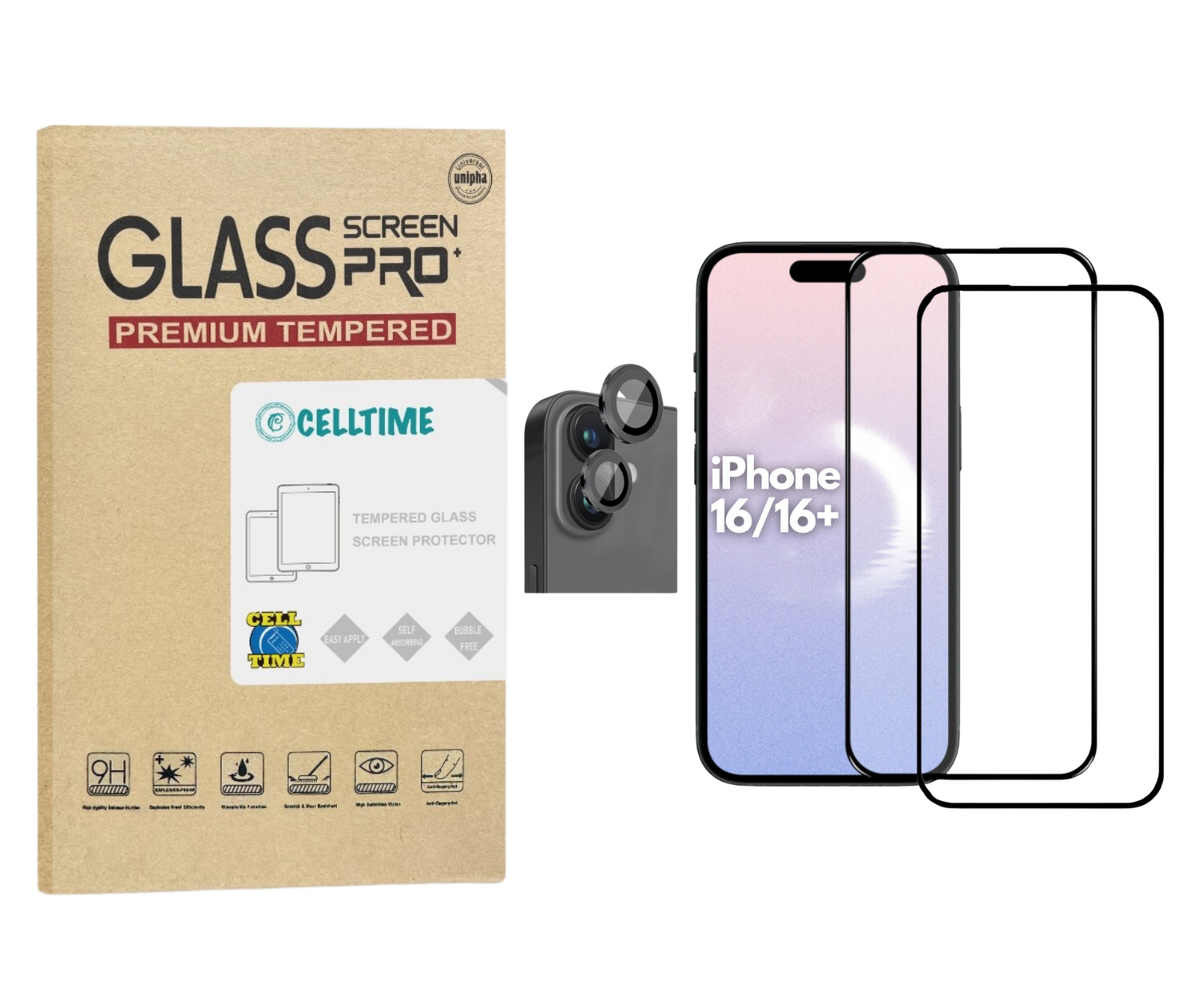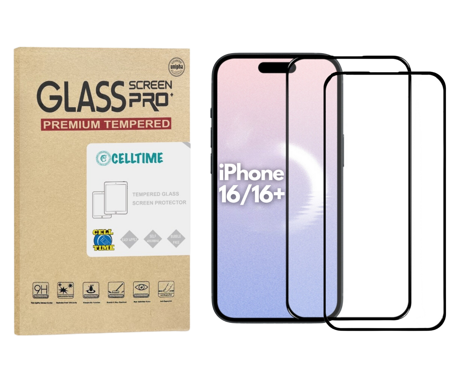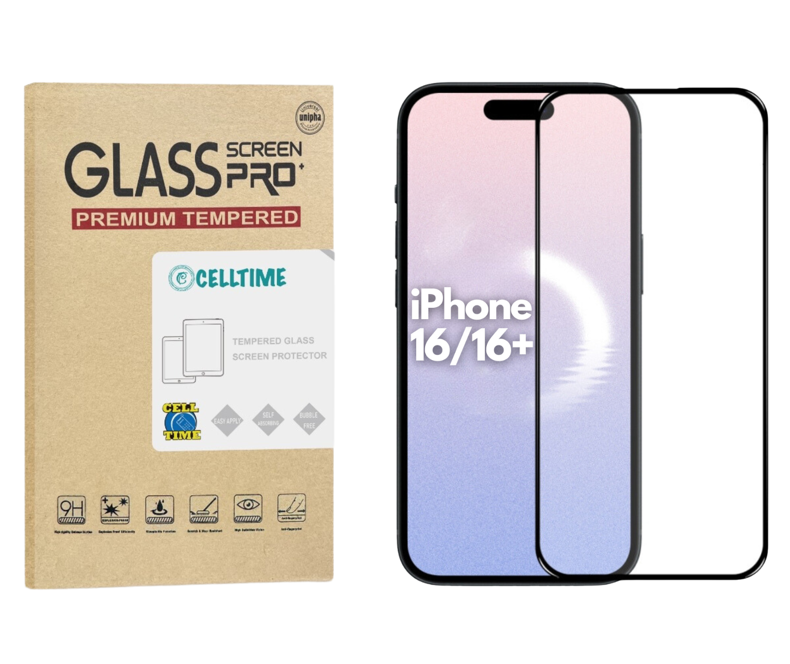 - 1 x CellTime Tempered Glass Screen Protector for iPhone 16 / 16 Plus