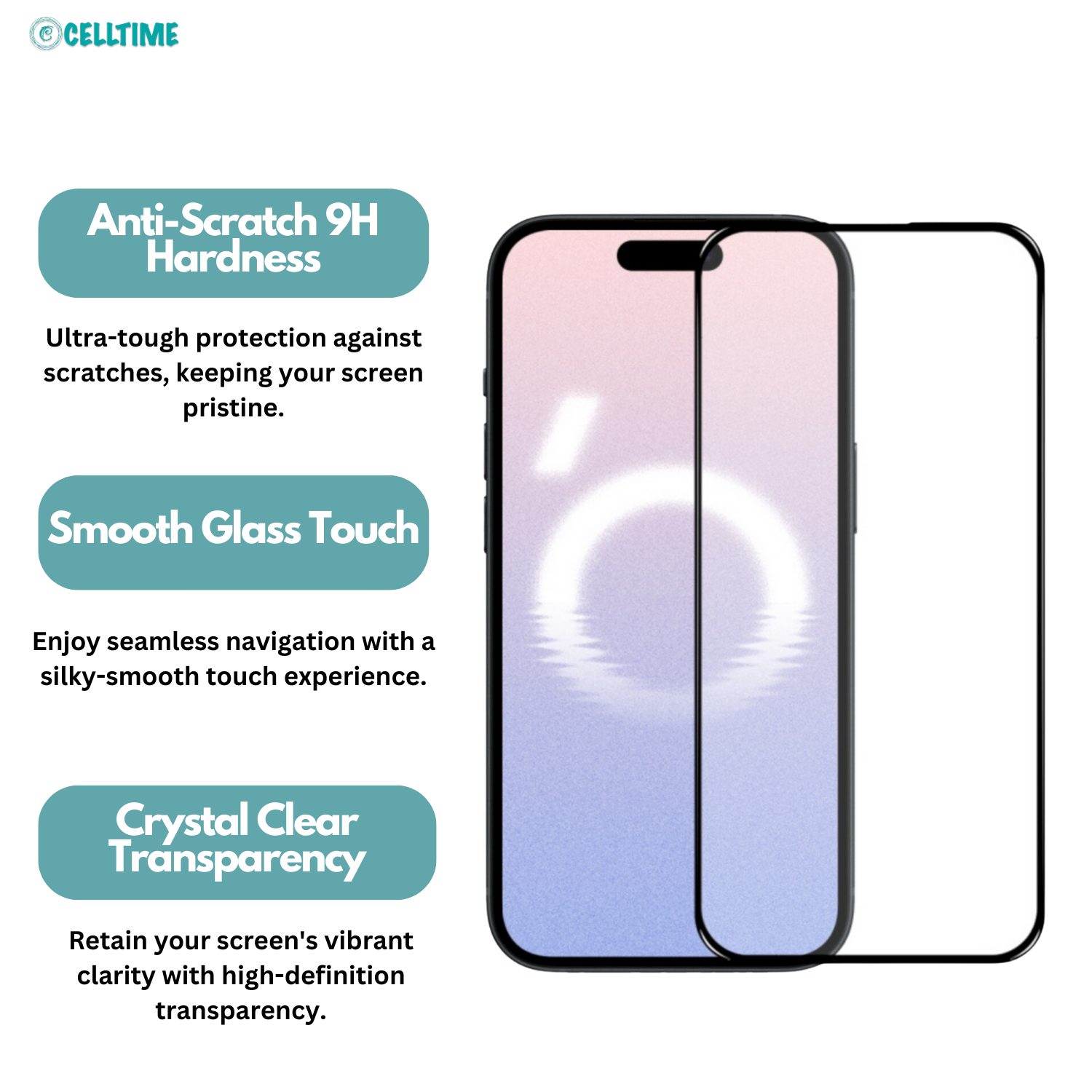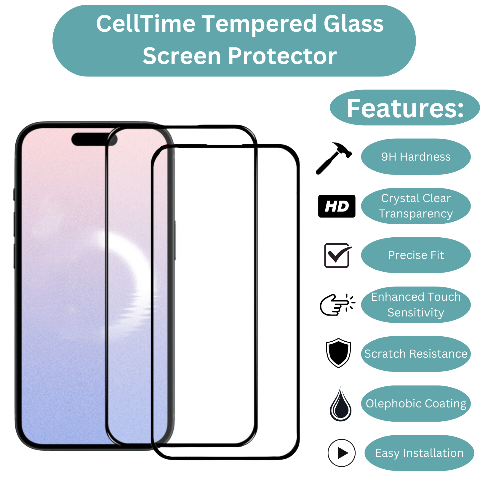 Elevate your cellphones protection to new heights with the CellTime Tempered Glass Screen Protector for iPhone 16 / 16 Plus. Crafted with precision and innovation, this screen protector is your device's shield, ensuring its display remains pristine and unblemished through every swipe and tap.