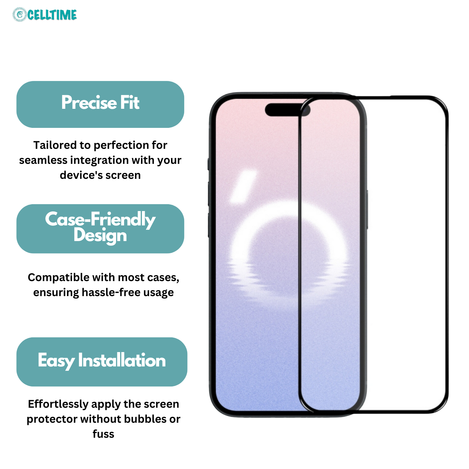 Case-Friendly Design: Compatible with most cases, the CellTime protector ensures full protection without compromising your preferred case's fit or style. The precise cutouts and dimensions allow for easy installation alongside your favorite case, offering comprehensive protection for your device.