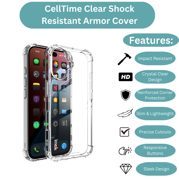 Keep your iPhone 16 safe and stylish with the CellTime Clear Shock Resistant Armor Case-the ultimate blend of form and function for everyday protection.