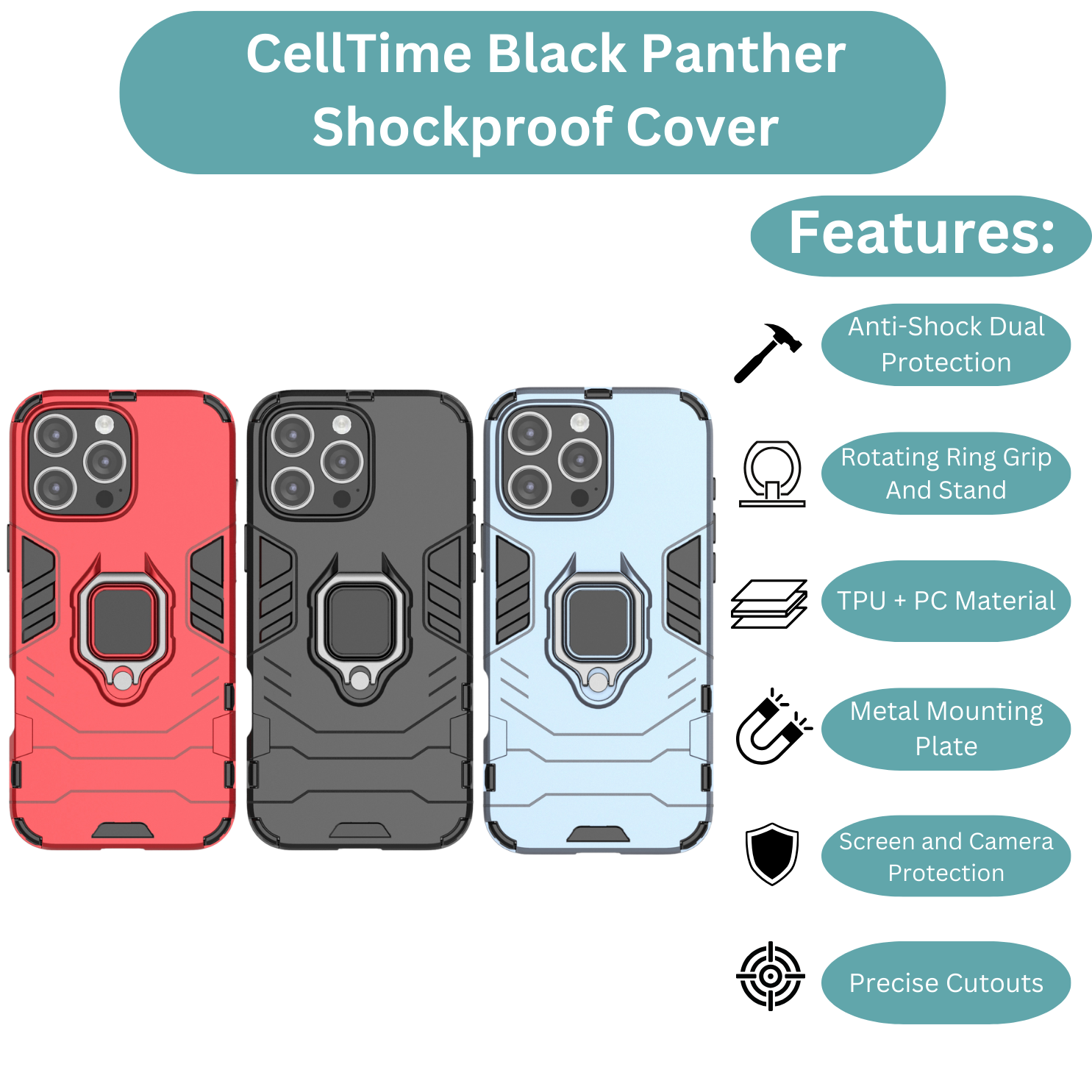Whether you're a Black Panther fan or simply seeking superior protection for your smartphone, the CellTime Shockproof Black Panther Magnetic Ring Stand Cover is the perfect choice. Elevate your phone's style, safeguard it from everyday hazards, and enjoy the convenience of hands-free viewing with this exceptional phone case.
