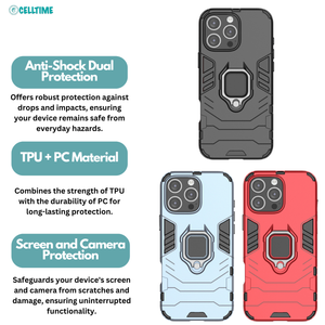 Tired of worrying about accidental drops and scratches damaging your precious smartphone? The CellTime Shockproof Black Panther Magnetic Ring Stand Cover is here to provide unparalleled protection, ensuring your 16 Pro / 16 Pro Max remains safe and secure, even in the most demanding situations.