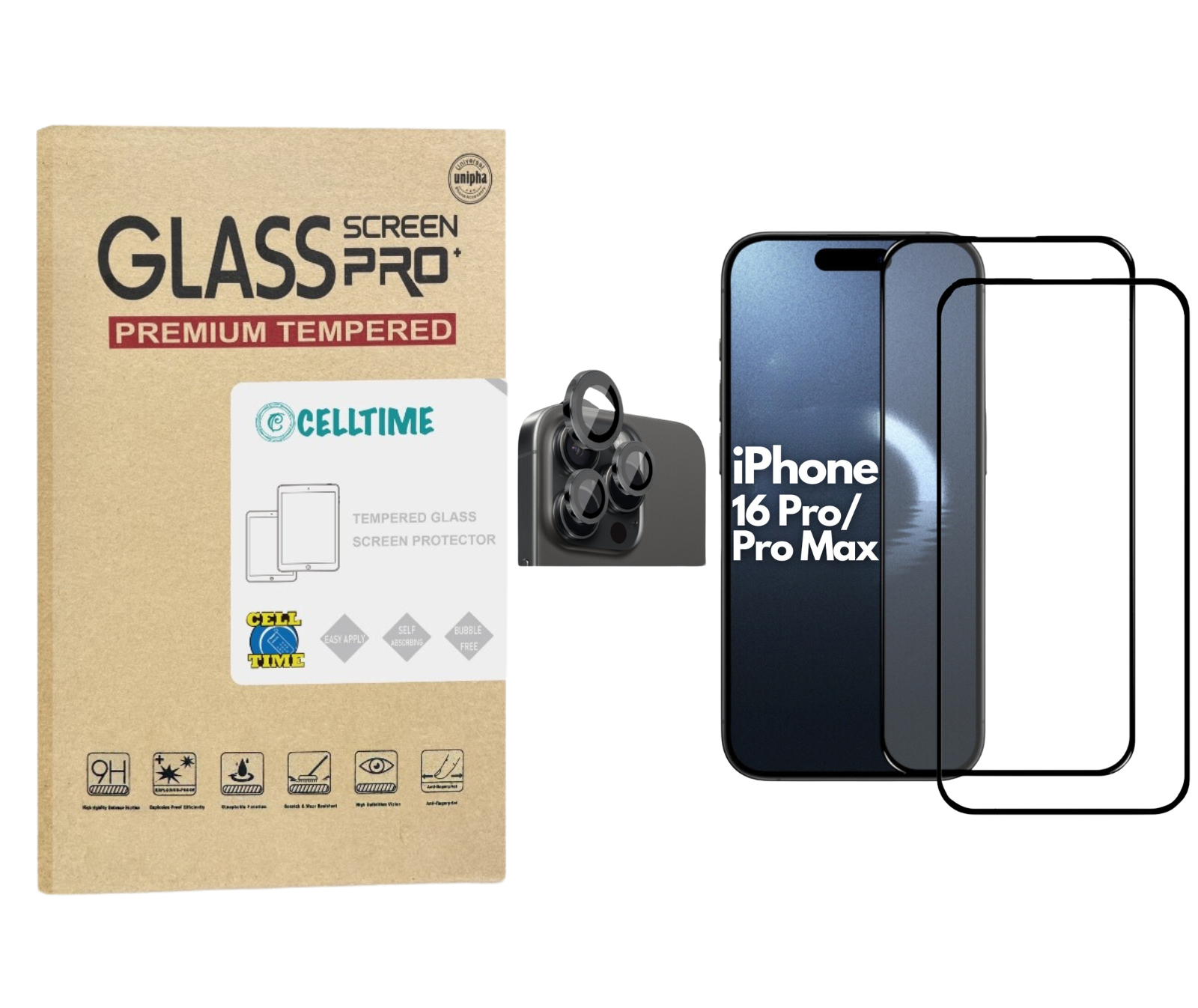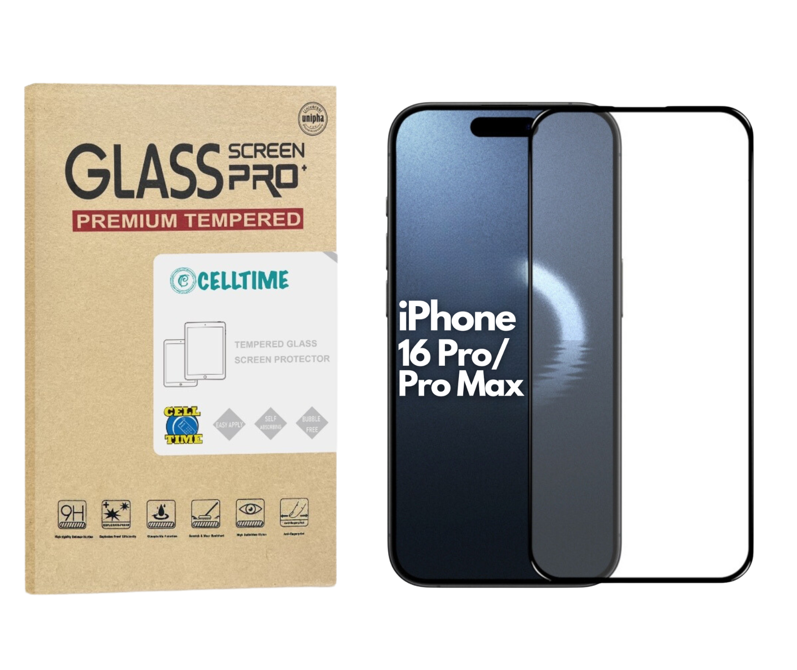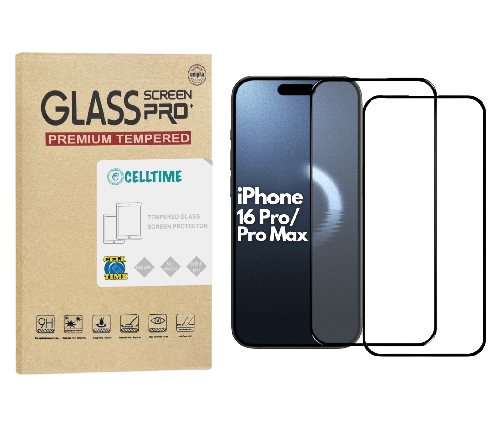 - 1 x CellTime Tempered Glass Screen Protector for iPhone 16 Pro / 16 Pro Max
