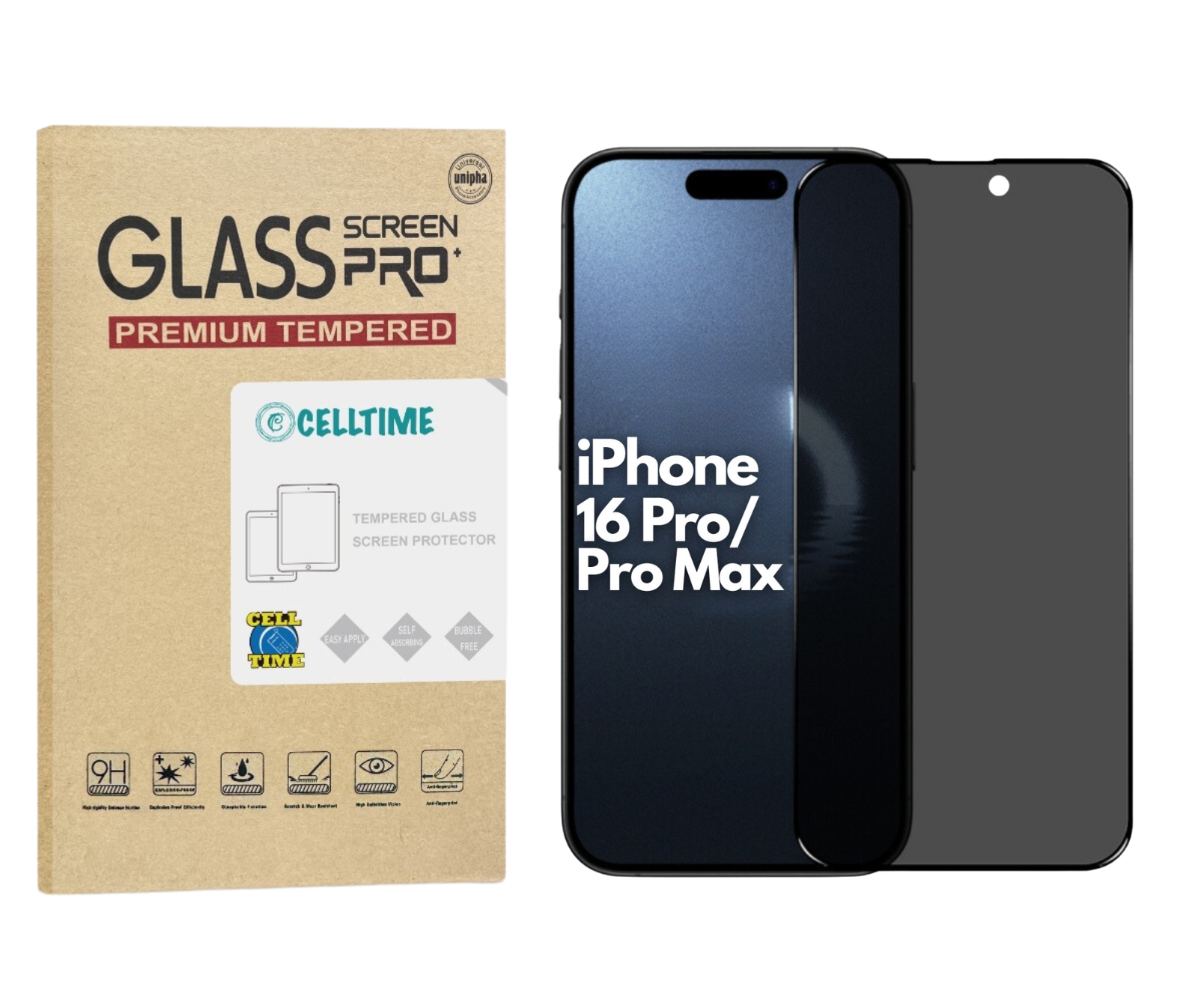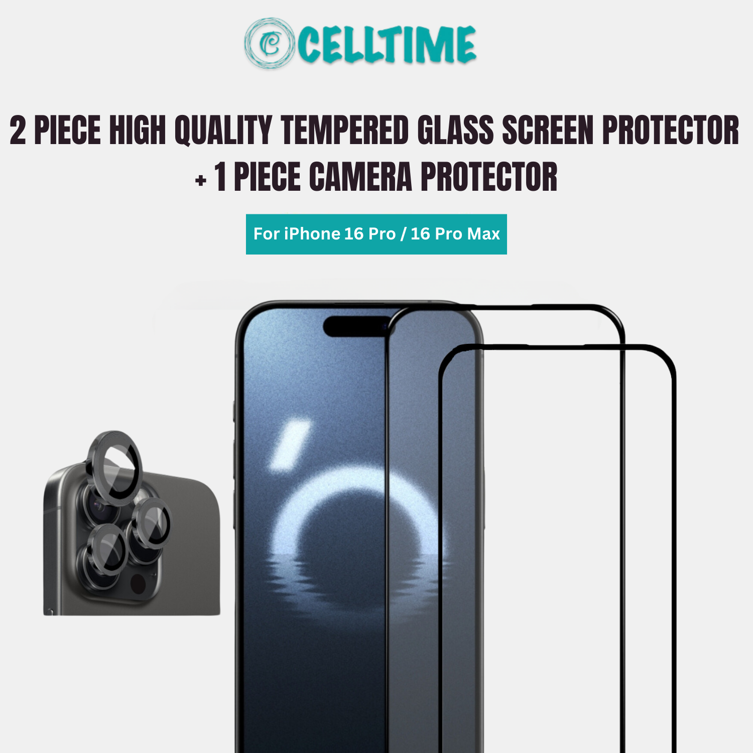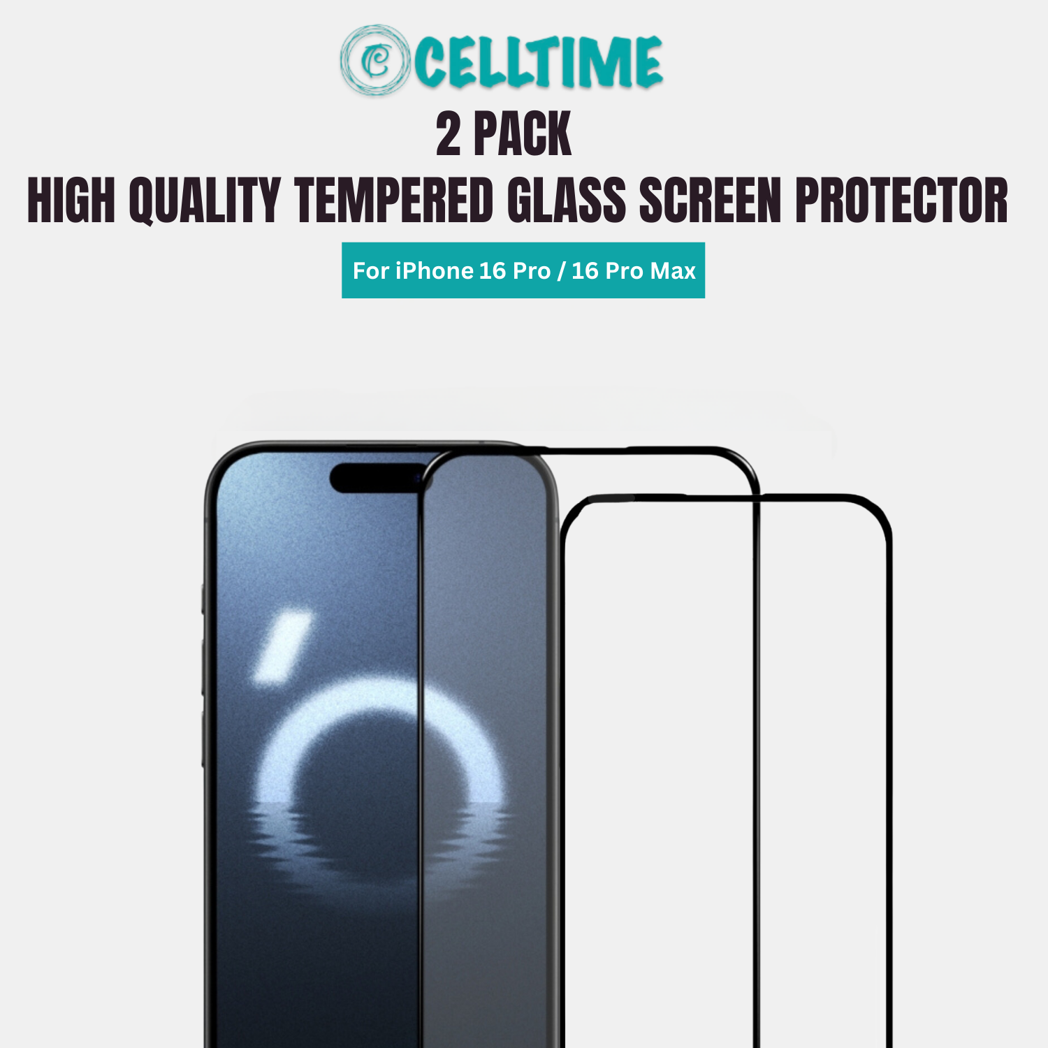 - 1 x CellTime Tempered Glass Screen Protector for iPhone 16 Pro / 16 Pro Max