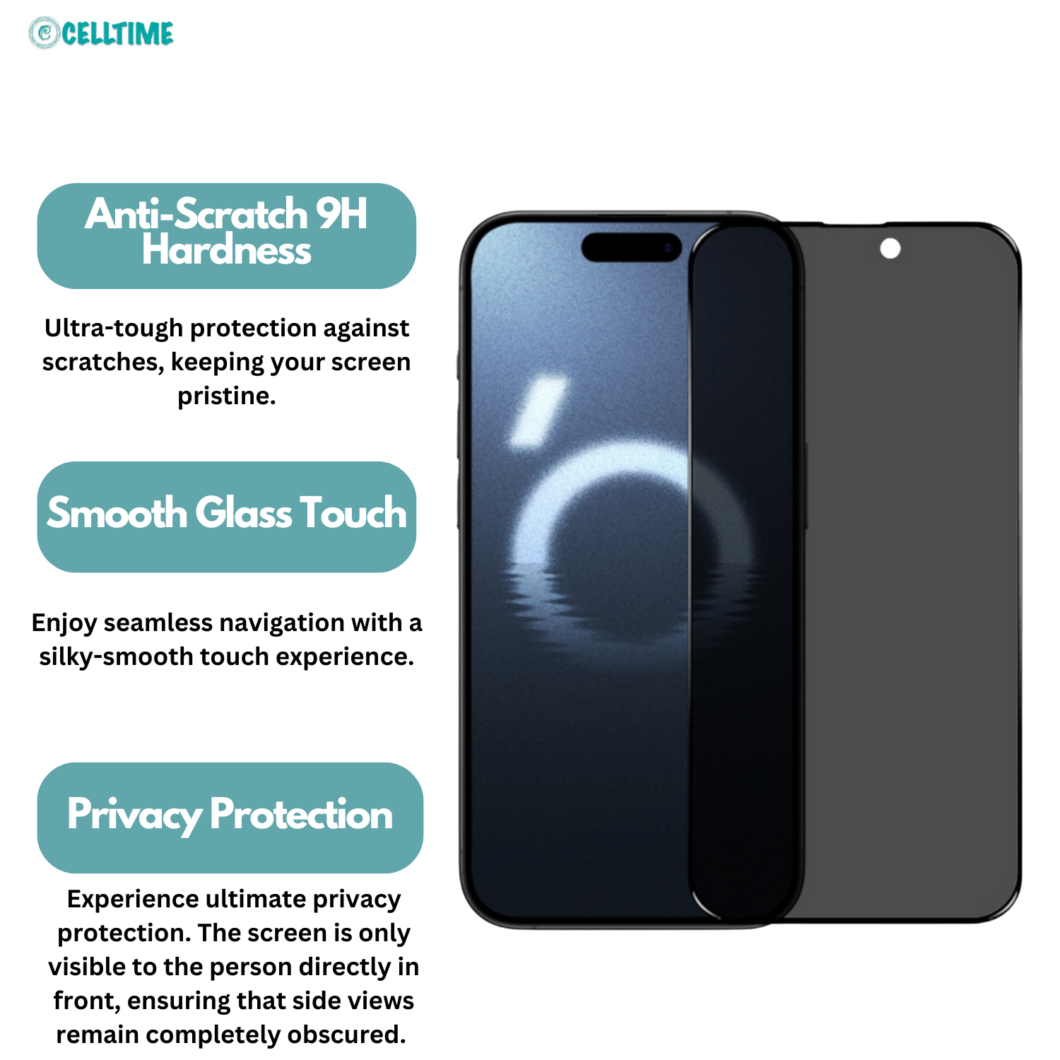 Enhanced Touch Sensitivity: Navigate your device with precision and accuracy, thanks to the CellTime protector's natural touch responsiveness. The design ensures that every touch and swipe is registered accurately, providing a smooth and responsive user experience.
