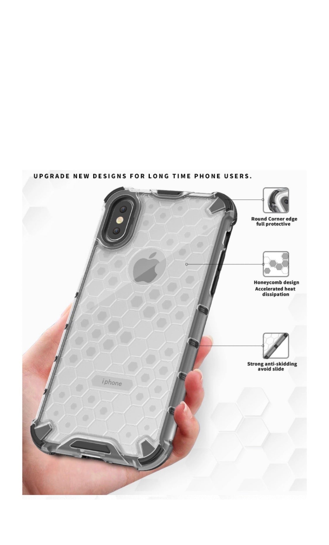 -Honeycomb Shockproof Design, absorber TPU + PC Case