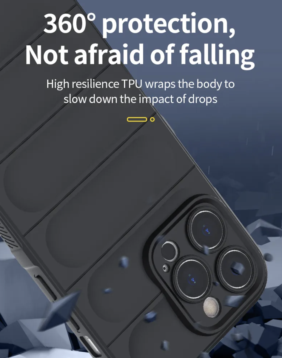 Perfectly absorbs shocks. The Magic Shield Case has 10 built-in invisible airbags: four in the corners and six on the back. It protects well against the effects of falls