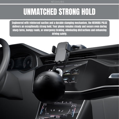 Crafted with a durable frame and premium materials, the NEOHUBS PULSE combines strength and flexibility in a sleek, low-profile design. Its smooth edges, reinforced joints, and reliable suction cup make it an everyday driving essential built to last.