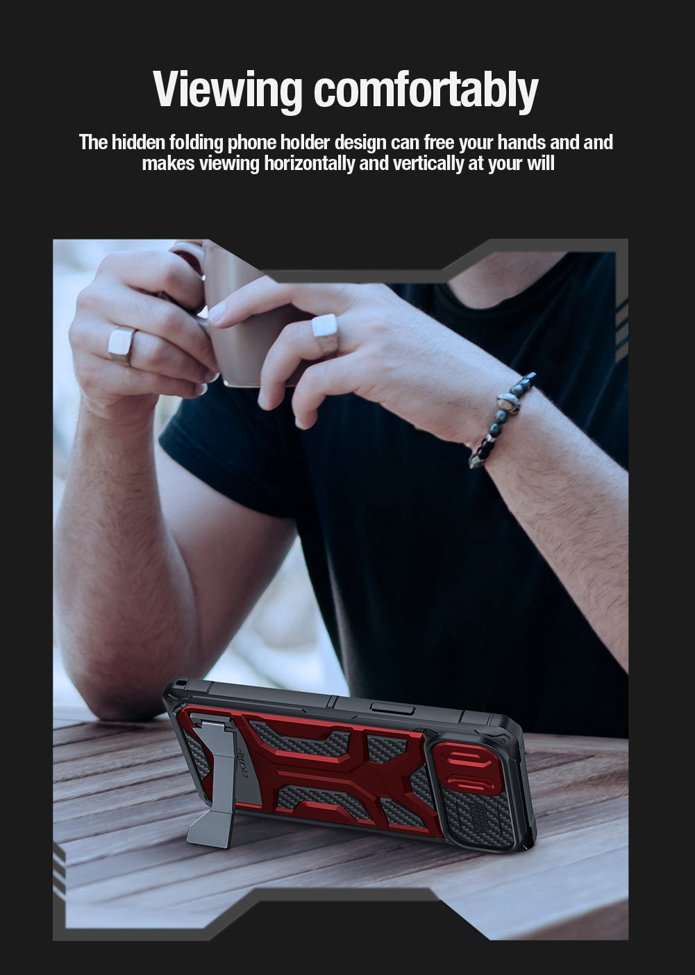 on four corners. Hidden folding phone holder free your hands anytime, anywhere.