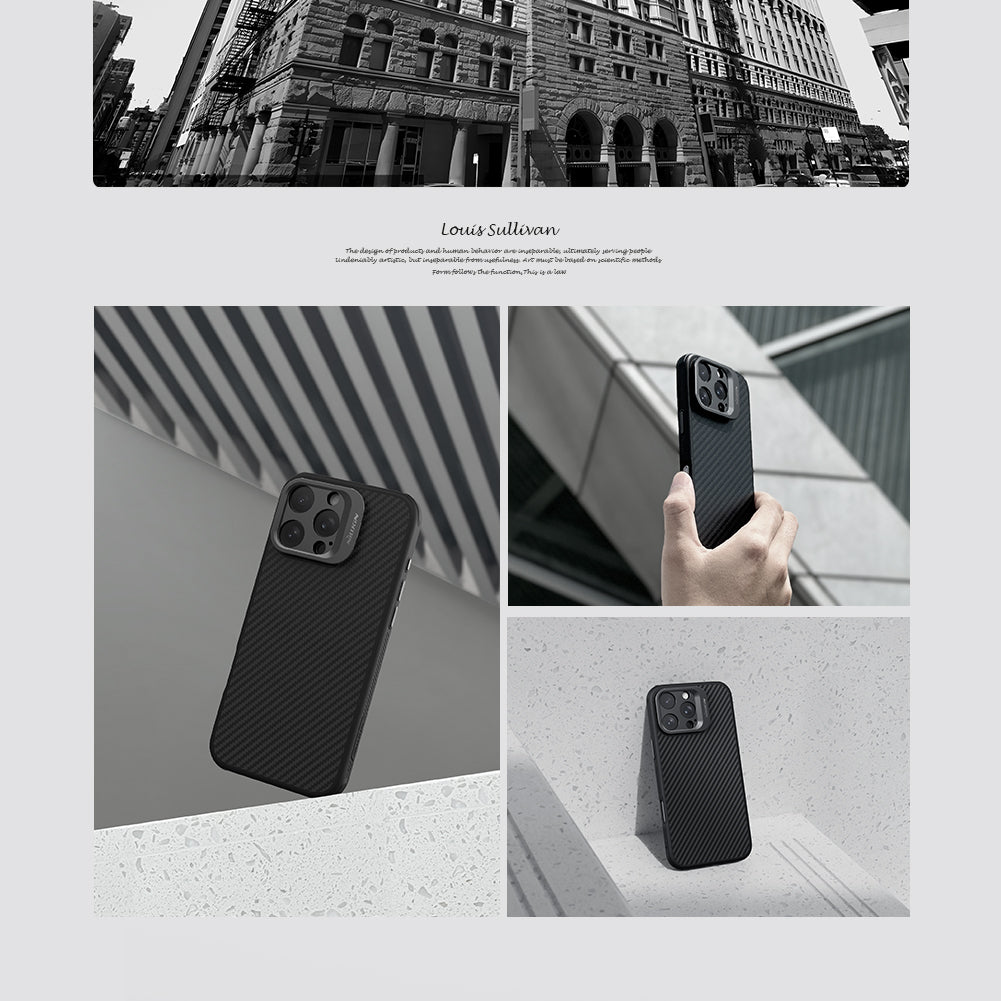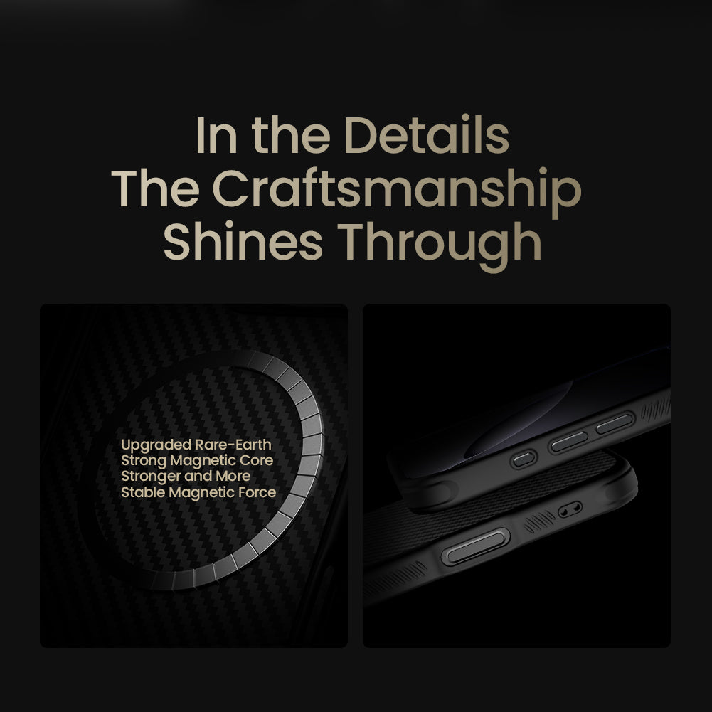 Ultimate Protection with Aramid Fiber & TPU: The cover's exquisite composition of Aramid Fiber and TPU not only enhances its strength but also adds a touch of sophistication, ensuring a premium feel and look. It offers unparalleled durability, ensuring your iPhone 16 Pro / 16 Pro Max is protected like it's wearing "body armor." The aramid fiber is precision woven and hot pressed to form a sturdy yet sleek shell.
