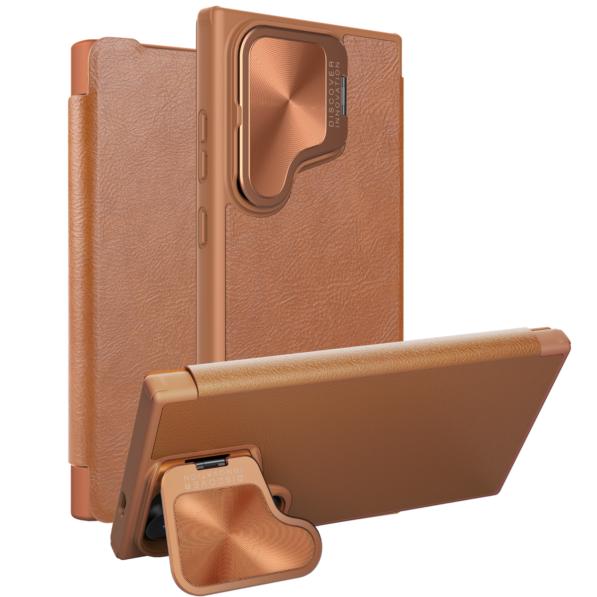 All-Around Protection|Lens Cover With Phone Stand|Convenient Integrated Card Storage|High-quality Leather