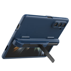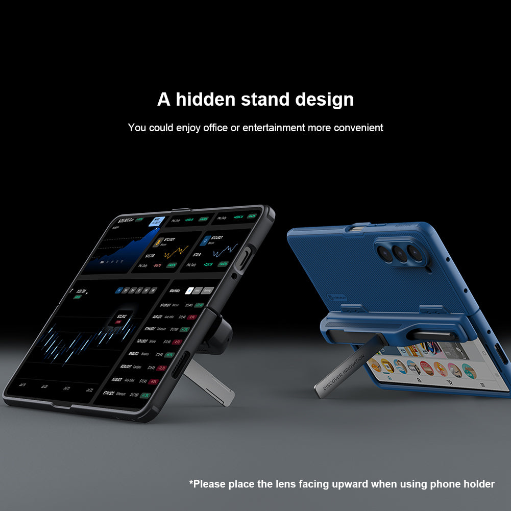 Super Frosted Shield Fold is a functional upgrade of the best-selling classic product, bringing a more convenient user experience than the original one. Continue the classic bump texture design on the surface, providing a refreshing and delicate touch. Adopt 360 all-inclusive protection to effectively prevent phone collisions. Innovative folding design allows for free opening and closing at 180 . Hidden mobile phone holder to free hands any time. Removable pen holder for S Pen, also increase glazing metal lens frame for phone camera to avoid scratching and collision.