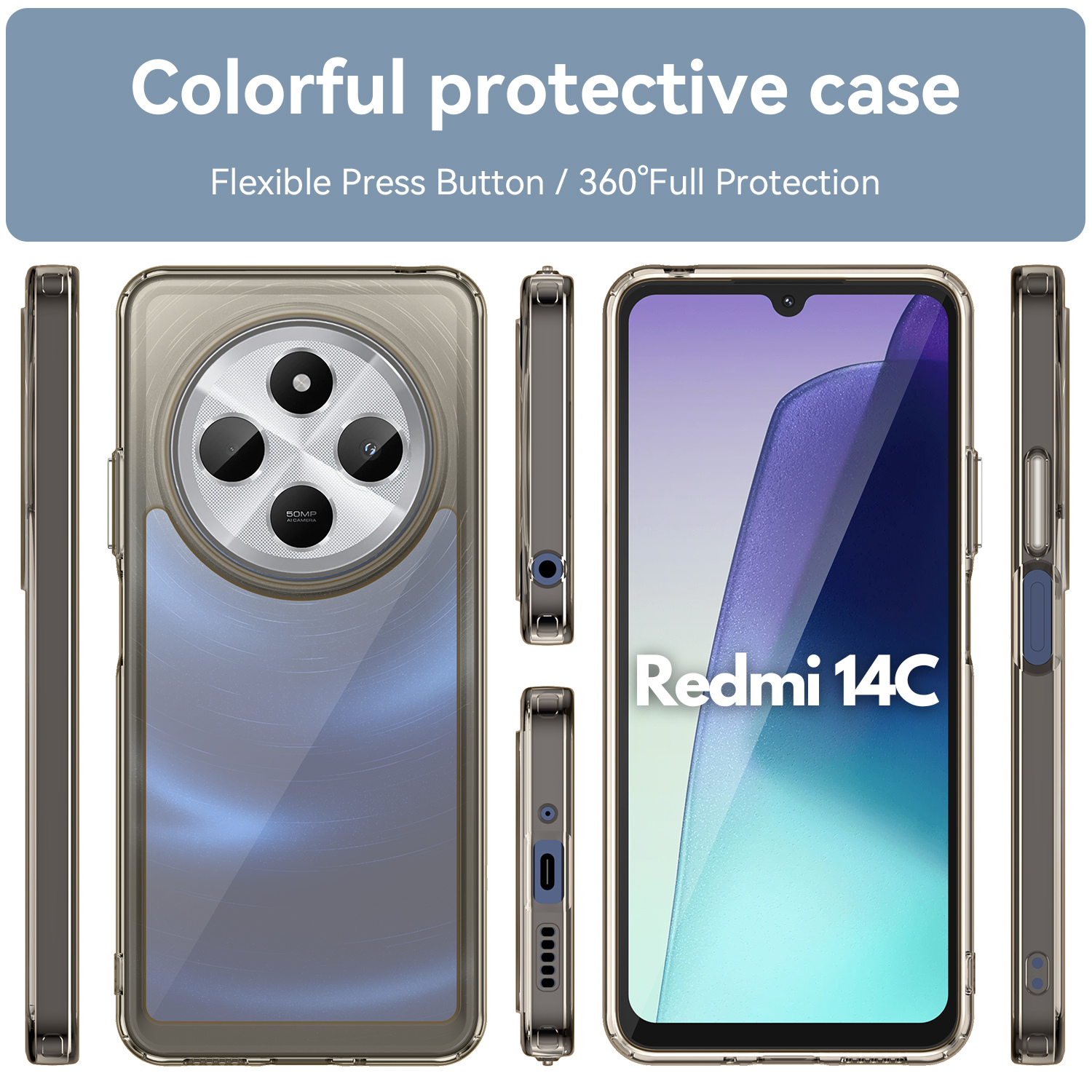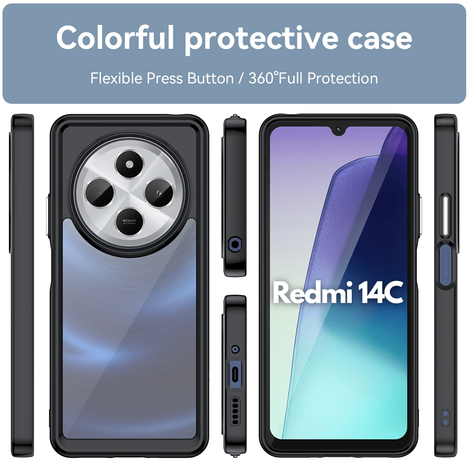 Compatible with Redmi 14C : Tailored specifically for the Redmi 14C , this cover ensures a perfect fit, allowing you to enjoy the full spectrum of its features while keeping your device shielded from the unexpected. Enjoy peace of mind knowing your device is protected by a case designed specifically for its model.
