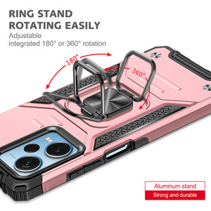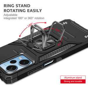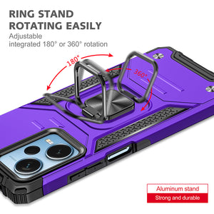 Built-in Dual-purpose Kickstand - A metal ring kickstand can rotate 360 degrees, is easy to rotate, and is sturdy on the case. Built-in kickstand gives you the convenience to watch videos and movies hands-free with desired comfort and stability. Besides, built-in metal magnetic sheet for stable adsorption, which can be directly adsorbed to the magnetic car mount holder. A metal plate can attach to a magnetic car mount, with no damage to the phone case.