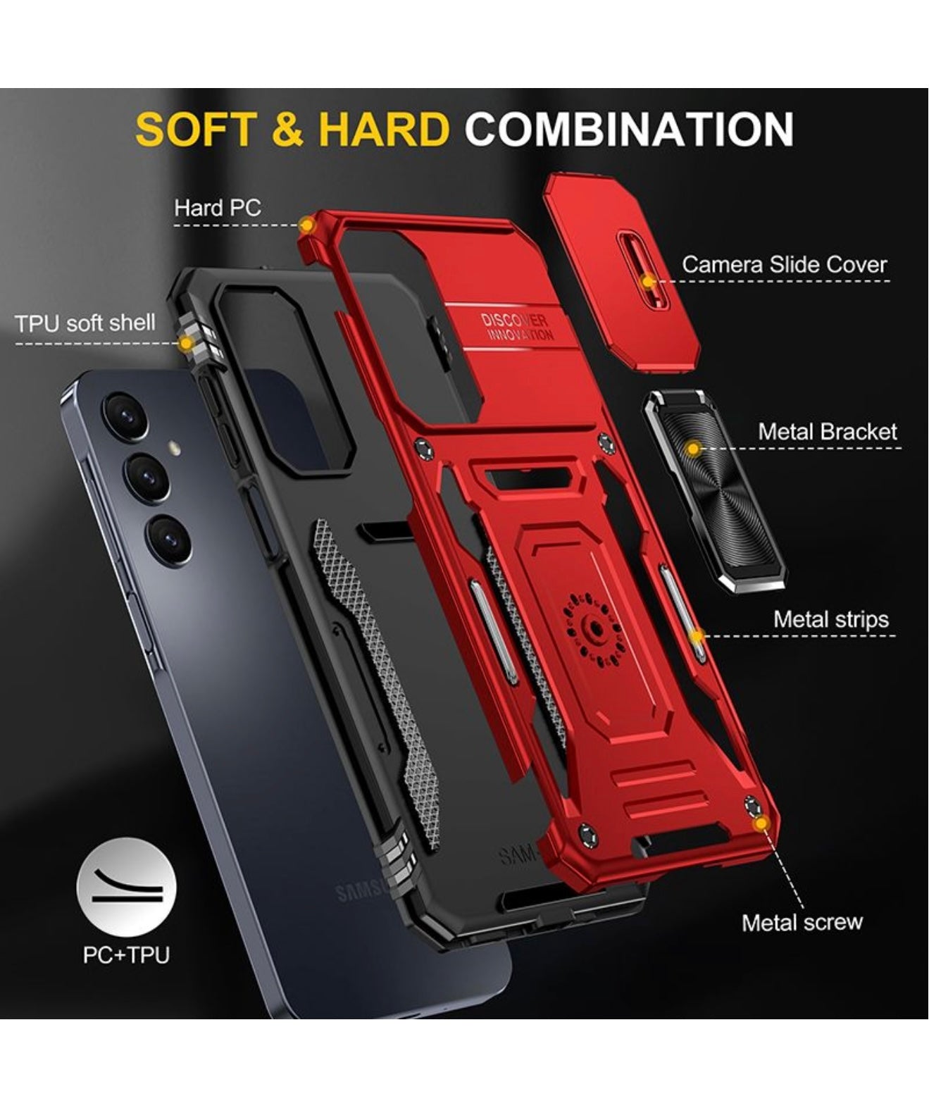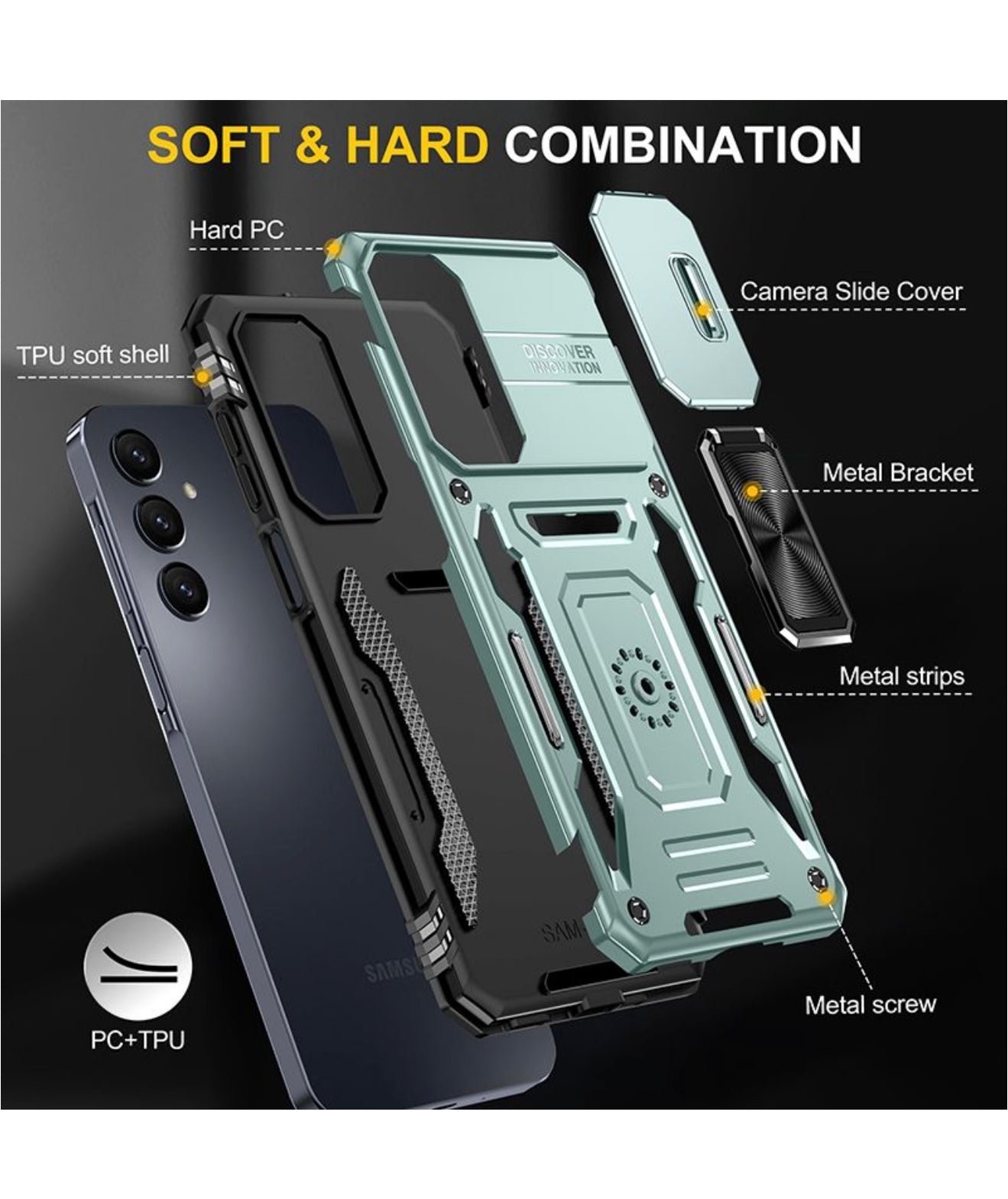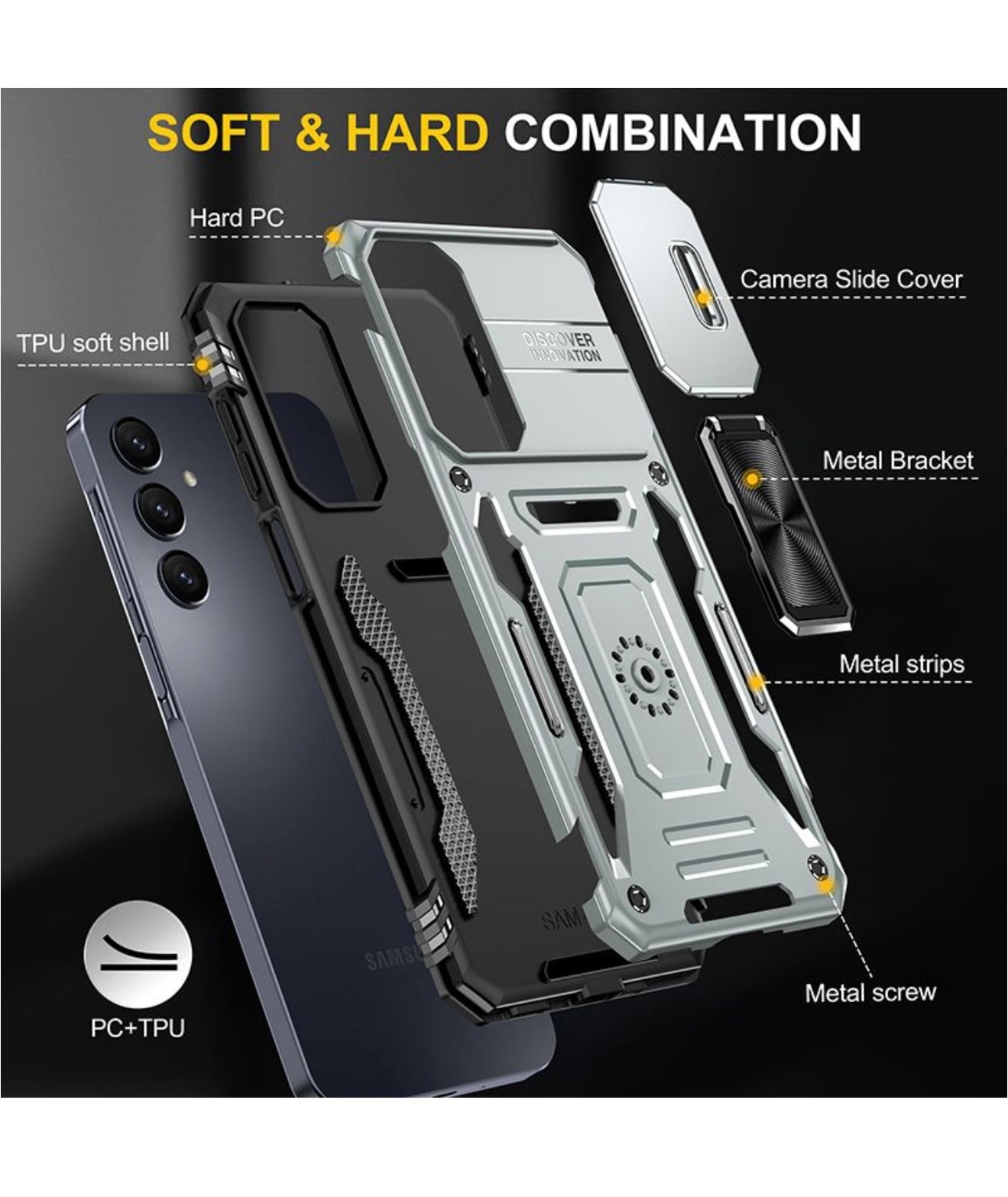 Soft and Hard Combination: The cover is constructed using a combination of high-quality PC (polycarbonate) and TPU (thermoplastic polyurethane) materials. This blend of soft and hard materials provides excellent protection while maintaining a slim and stylish profile.