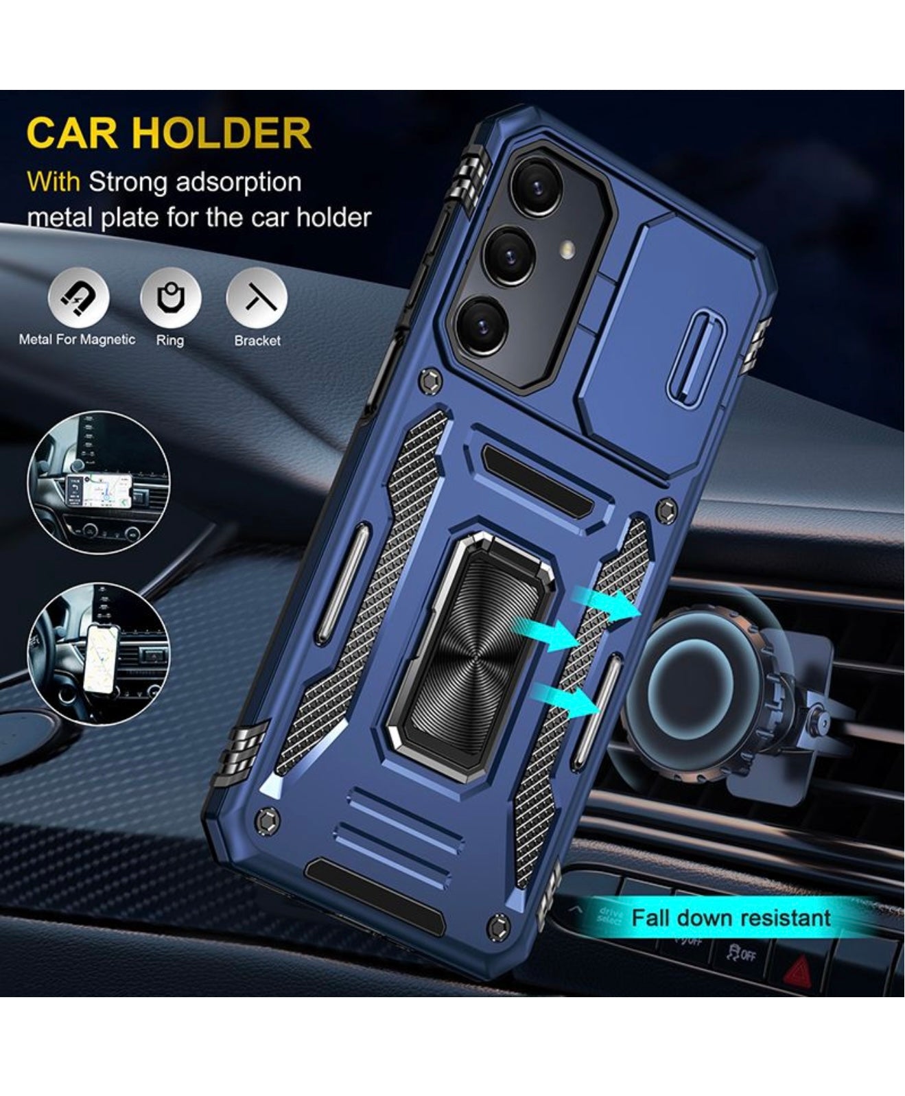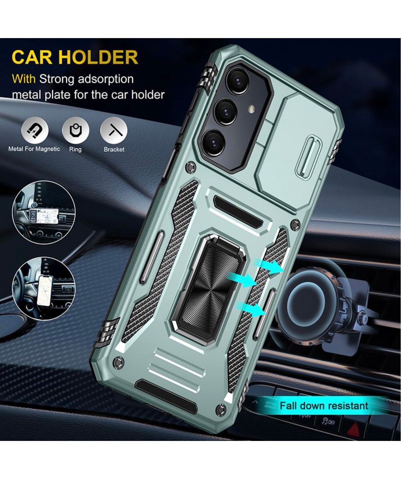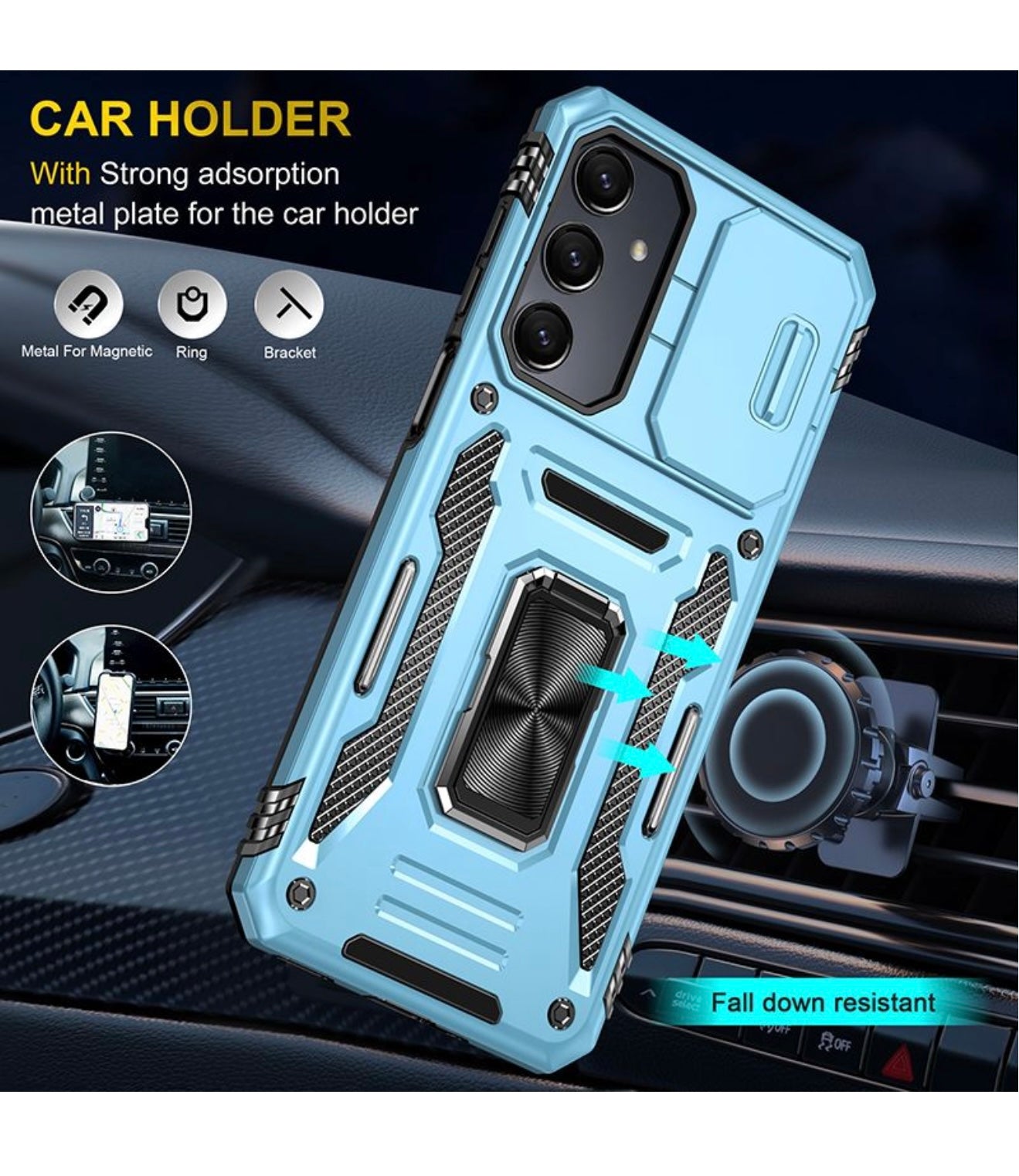 Magnetic Car Holder Compatibility: The case includes a strong absorption metal plate, making it compatible with magnetic car holders. This feature allows you to securely attach your Galaxy A16 to your magnetic car holder for safe and convenient navigation.