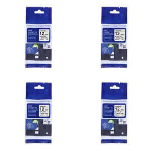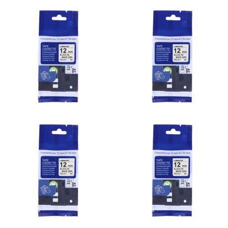 TZ-231 Brother Label Tape Cartridge 12mm-Laminated Black On White-Pack Of 4