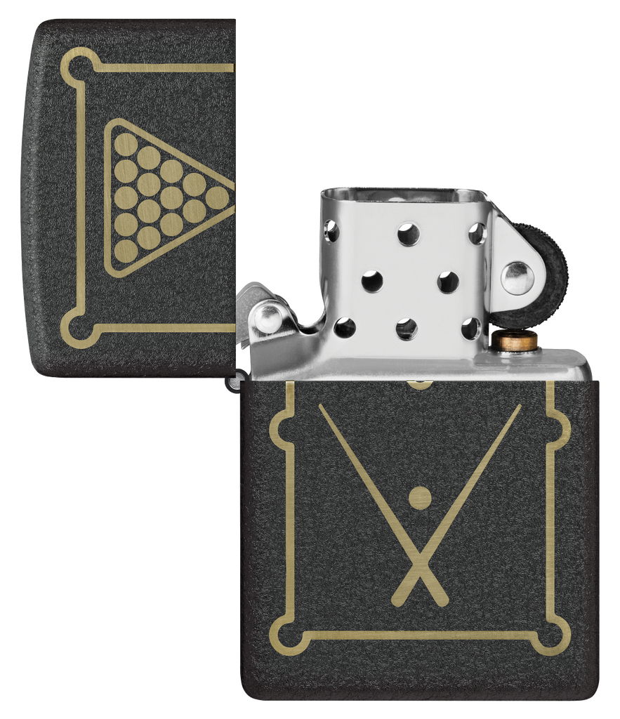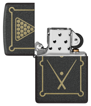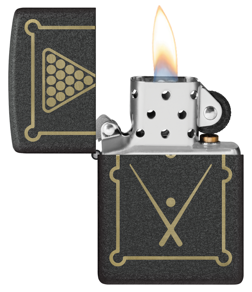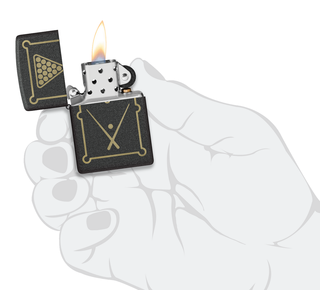 Perfect for any billiards player, this minimalist Laser Engrave design is the perfect pop of contrast on a classic Black Crackle® lighter. Comes packaged in a gift box. For optimal performance, fill with Zippo lighter fuel.