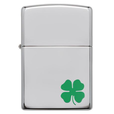 This High Polish Chrome windproof lighter has a four leaf clover color imaged on this lighter. Comes packaged in a gift box. For optimal performance, fill with Zippo lighter fuel.