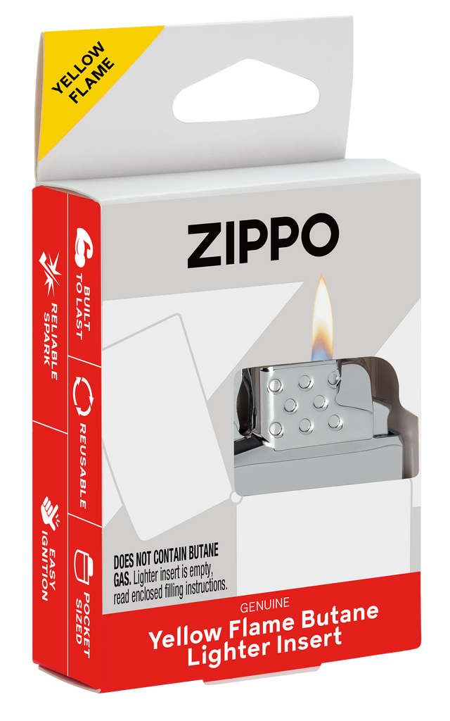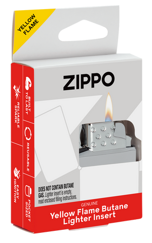 Zippo's yellow flame butane insert is the perfect accessory for any classic Zippo lighter case. The refillable butane insert stays true to Zippo's roots in form and function and produces an odorless yellow flame for even more versatility. Backed by our best-in-class warranty for years of reliable use. For optimum performance, fill with Zippo butane fuel. Comes packaged in a gift box.