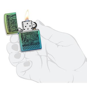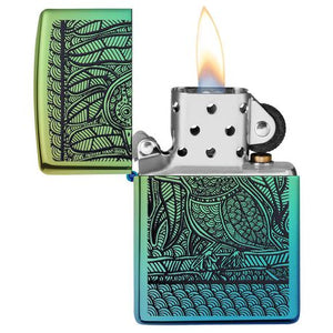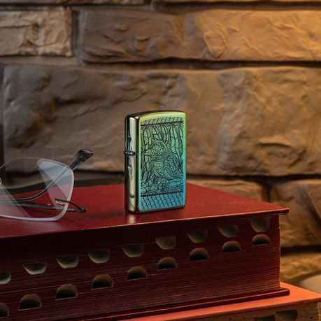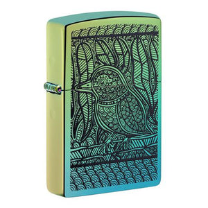 Using the rich earth tones and vibrant colors of his culture and country, Australian artist and activist John Smith Gumbula incorporates historic indigenous art techniques and modern art media to create stunning works of art with a powerful message. This new color imaged design of a bird showcases his vivid work on the canvas of a High Polish Teal lighter. Comes packaged in a gift box. For optimal performance fill with Zippo lighter fuel.