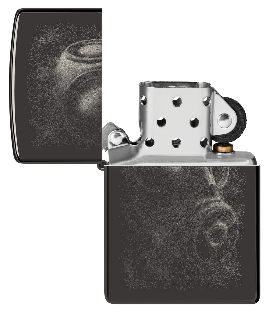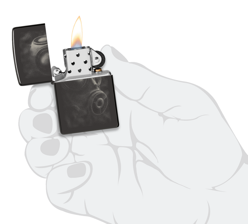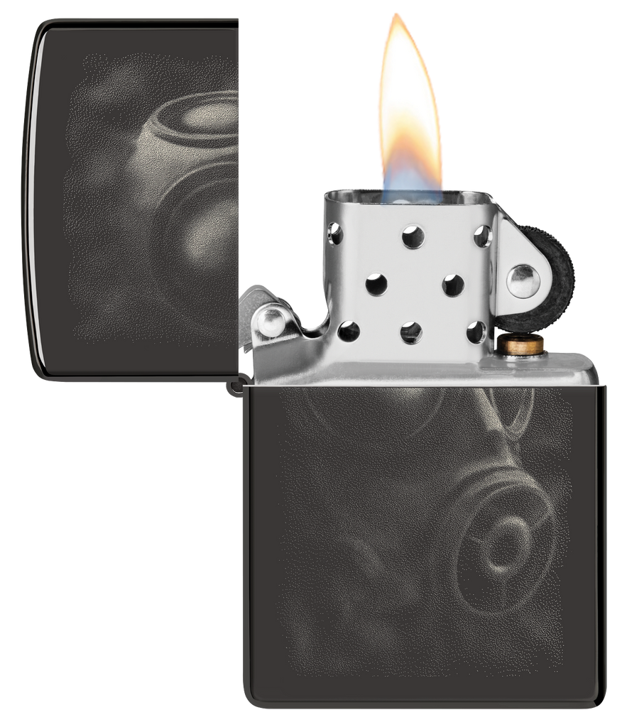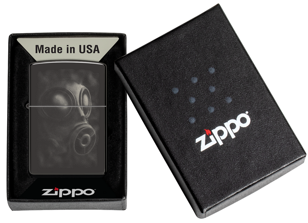 A masked trooper emerges from the vapors on this fantastically eerie High Polish Black lighter, which forms a lustrous backdrop for the surrealistic Photo Image design. Comes packaged in a gift box. For optimal performance, fill with Zippo lighter fuel.