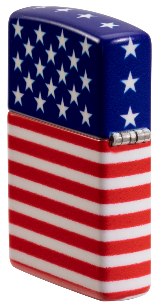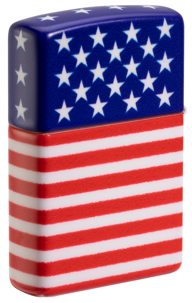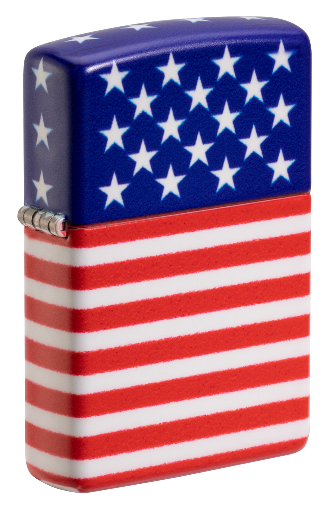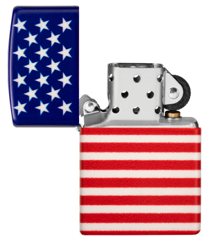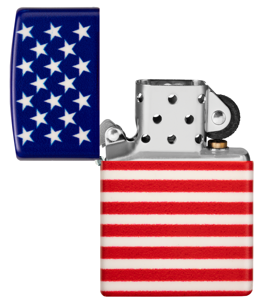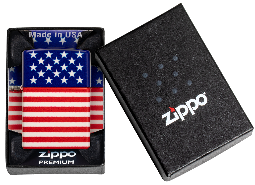 Show off your USA pride with this star-spangled 540 Color lighter. The bold stripes and shining bright stars of Old Glory seamlessly surround this patriotic piece. Comes packaged in a gift box. For optimal performance, fill with Zippo lighter fuel.
