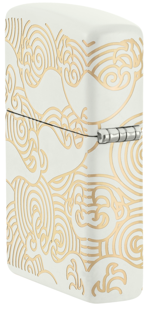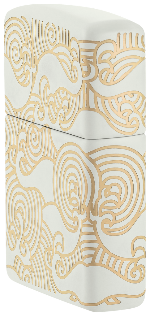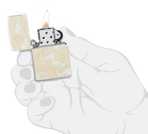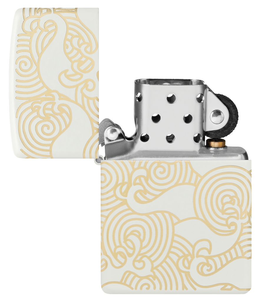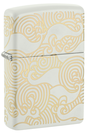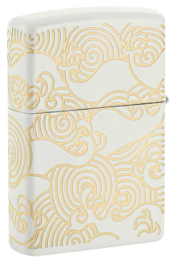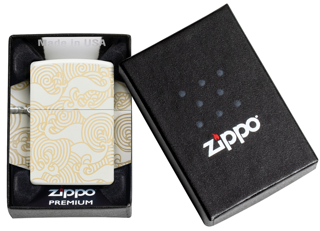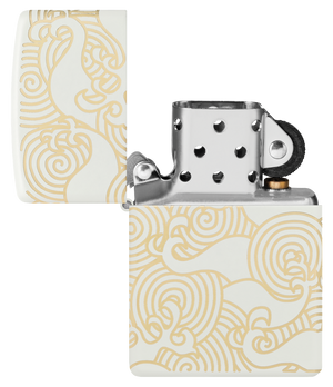 This serene White Matte model marks the debut of our crisp and precise Laser 360° engraving method on our signature matte base models – a treatment that was previously reserved for only the front surface. Revealed in luxurious brass tones, swirling waves tumble and churn around all sides of the piece in the delightfully seamless design. Comes packaged in a gift box. For optimal performance, fill with Zippo lighter fuel.