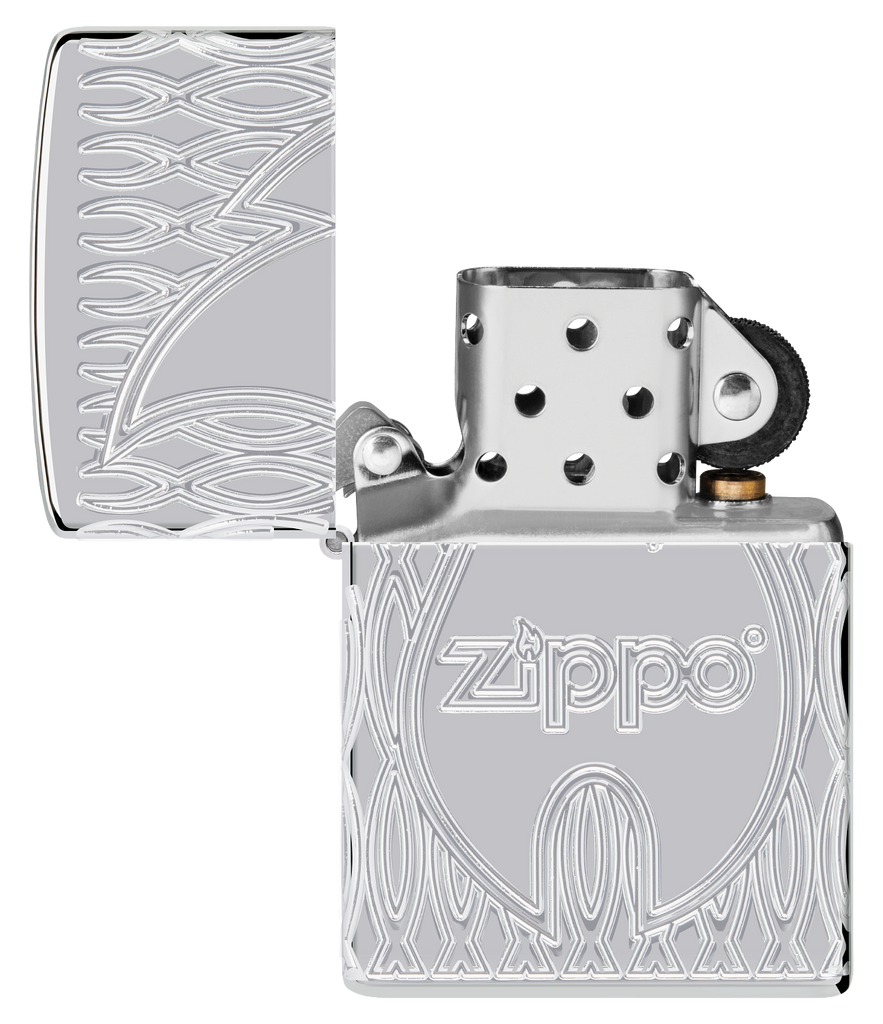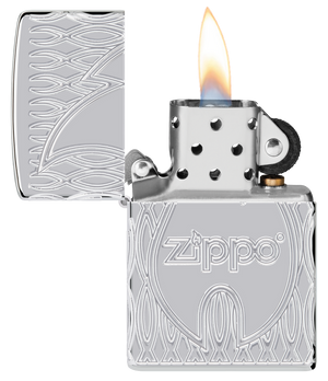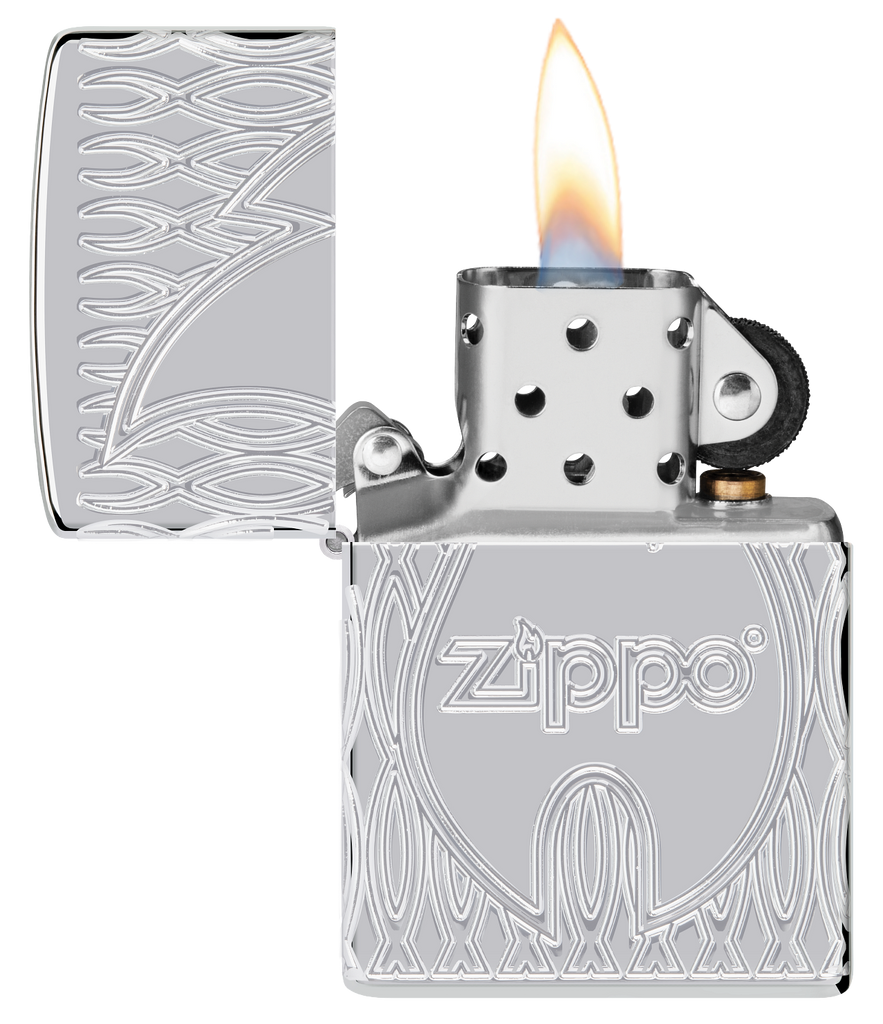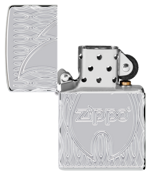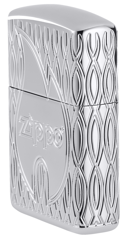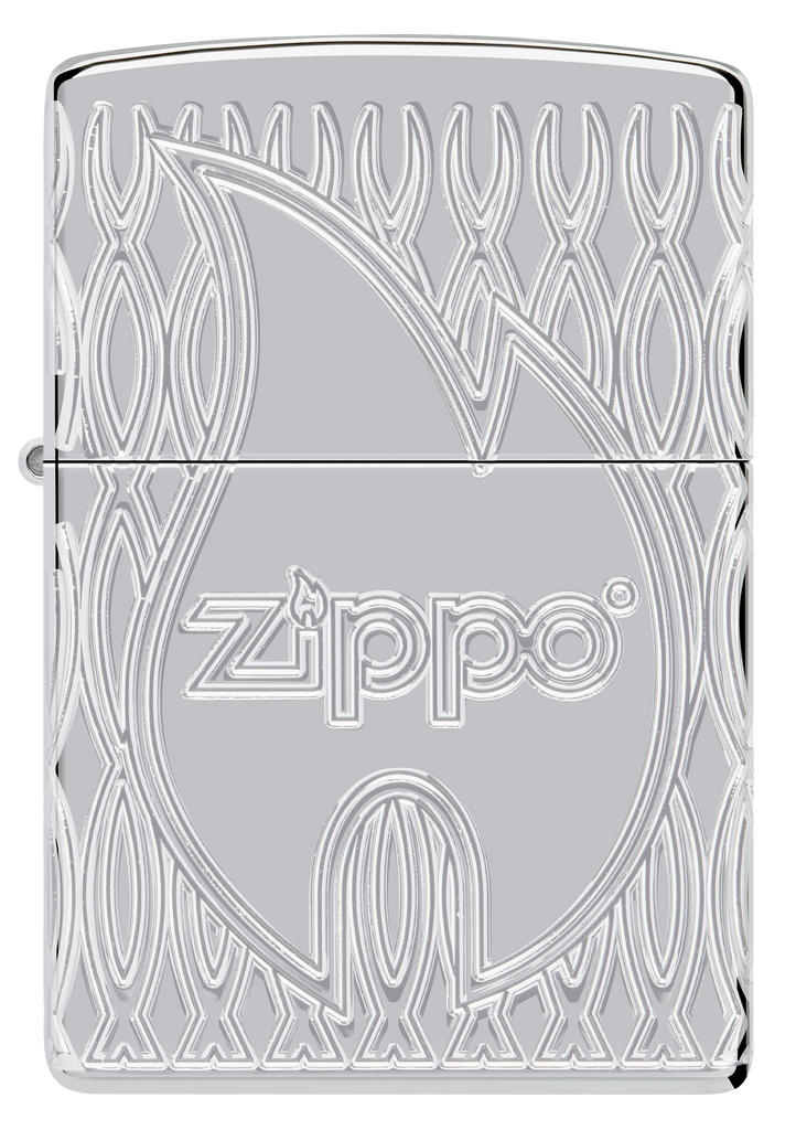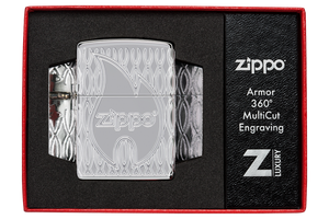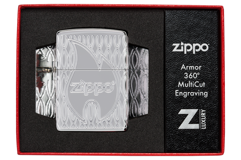 The classic Zippo logo and flame icon command the surface of this exquisite Armor® High Polish Chrome lighter, which is surrounded on all sides by a textured geometric motif in a luxurious MultiCut design. Comes packaged in a gift box. For optimal performance, fill with Zippo lighter fuel.