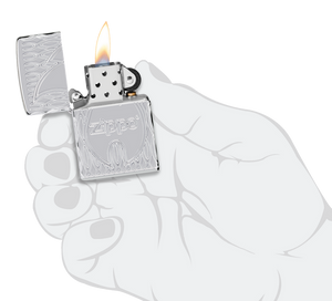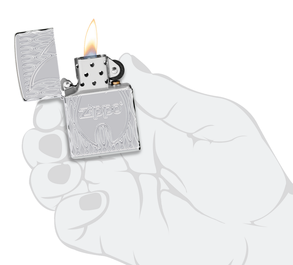 - Genuine Zippo windproof lighter with distinctive Zippo "click"