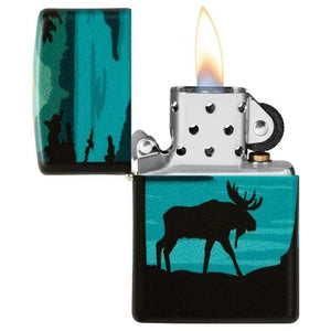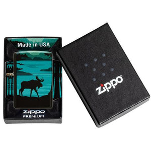 Immersive, vivid, durable designs are the new frontier of Zippo’s unparalleled decorative abilities. Zippo’s new 540 Color process allows for complete coverage of the lighter’s surface with precision artwork. This landscape design utilizes the 540 Color process to create this picturesque scenic view. In the foreground of the design, you will find a me that brings a touch of wildlife to the rich forest. Hinges and bottom stamps are laser engraved to allow for peak performance and easy date stamp verification, but otherwise, every single nanometer of the lighter’s surface can is covered by this resilient new process. Comes packaged in a gift box. For optimal performance fill with Zippo lighter fuel.