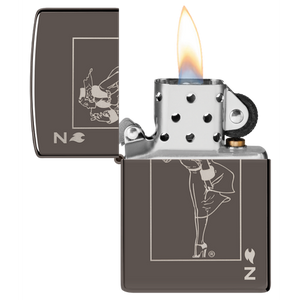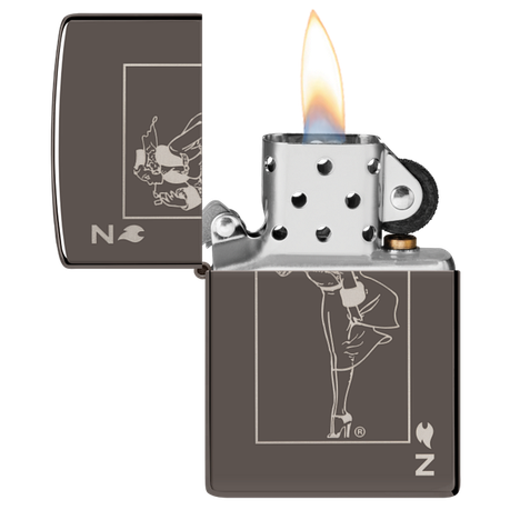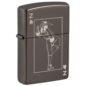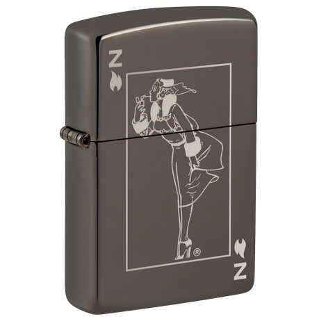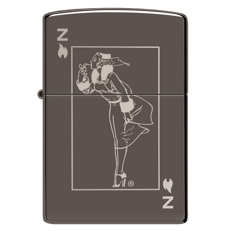 Zippo fans young and old will be excited to see one of our most loved and recognized icons making a glamorous reappearance on this Black Ice® lighter. Our Laser Engrave process is used to depict Windy in this play on playing cards in the best suit of all - Zippo, of course! Comes packaged in a gift box. For optimal performance, fill with Zippo lighter fuel.